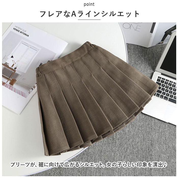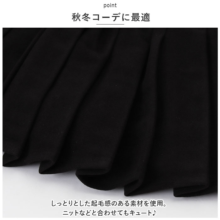 | 商品説明 | おしゃれキッズにぴったり。ふんわり広がるミニスカートが新登場。【フレアなAラインシルエット】プリーツが、裾に向けて広がるシルエット。女の子らしい印象を演出♪【安心のインナーパンツ付き】サラッとした生地感のインナーパンツ付きで、活発に動き回るお子さまでも大丈夫。ダンスなどの練習着や衣装としても活躍☆【自分サイズにフィット】締めつけを感じにくいバックゴム仕様で、心地よくフィット。フロントからの見た目もすっきり!【秋冬コーデに最適】しっとりとした起毛感のある素材を使用。ニットなどと合わせてもキュート♪【色んなアイテムと合わせやすいミニ丈】足元をキレイ魅せ!スニーカーを合わせるも良し、ブーツなどとも相性抜群。【着回し力ばっちり】トップスを選ばず使えるシンプルな無地デザイン。落ち着きのあるカラーをラインナップ。 |
