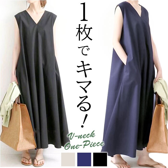 | 商品説明 | 【サラっと1枚でキマる!】夏に1枚は欲しい、ラクチンでおしゃれな♪ノースリーブワンピース Vネックが登場。【洗練されたシンプルデザインが魅力♪】こだわりデザインで美フォルムを実現したこなれワンピ。ワントーンで、大人っぽ仕上げ。【スラっとスタイルUPするIライン】すとんと落ちるすっきりシルエットと、センタープレスでIラインを強調。体型カバーも◎【嬉しいストレスフリーの着心地】とにかくラクチンな着心地。締め付けなし、軽くて涼しい、夏にぴったりの1枚。【ちょっとだけ深めのVネック】デコルテを美しく魅せる、深めのVネック。深めだから抜け感があり爽やかな印象に。【お出かけに便利なポケットつき】スマホやタオル、鍵などをサッと入れられるポケットつき。お出かけ中もスムーズ。【普段使いからレジャー、リゾートまで】幅広いシーンで活躍する!普段使いはもちろん、レジャーや旅行などでも使える! |