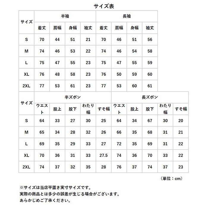 | 重量 | 約374g(※長袖長ズボンの商品一式の重量です。) |