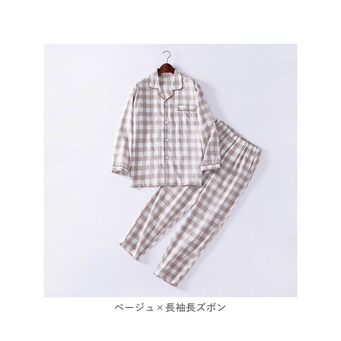 ルームウェア メンズ pk243【ベージュ×長袖長ズボン】【2XL】