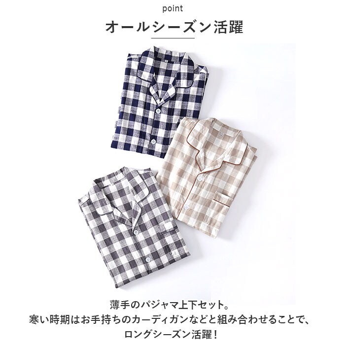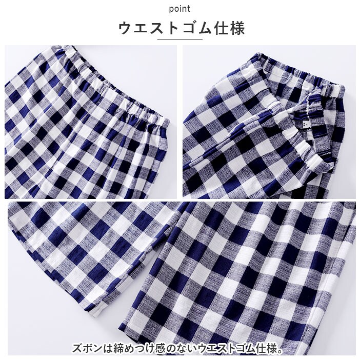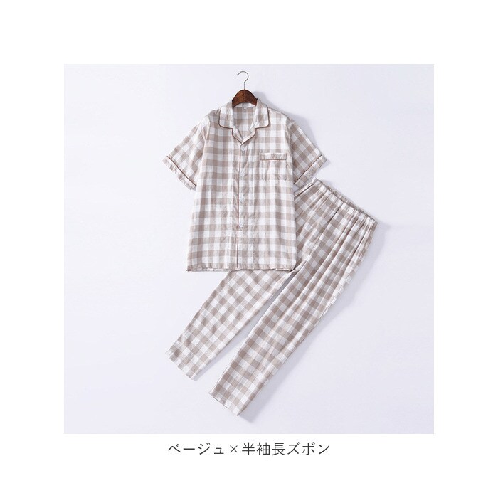 | 商品説明 | ナチュラル可愛い、チェック柄のパジャマ♪【オールシーズン活躍】薄手のパジャマ上下セット。寒い時期はお手持ちのカーディガンなどと組み合わせることで、ロングシーズン活躍!【ボタンタイプ】トップスは前開きのボタンタイプ。【ウエストゴム仕様】ズボンは締めつけ感のないウエストゴム仕様。【あると何かと便利】左胸にはあると何かと便利なポケット付き。【3種類のタイプ】半袖・半ズボンタイプ、長袖・長ズボンタイプ、半袖・長ズボンタイプの3種類からお好みのタイプを選べるのも嬉しいポイント。【お家でのリラックスタイムに】ゆったりとしたシルエットで就寝時のパジャマとしてはもちろん、お家でのリラックスタイムにぴったり。 |