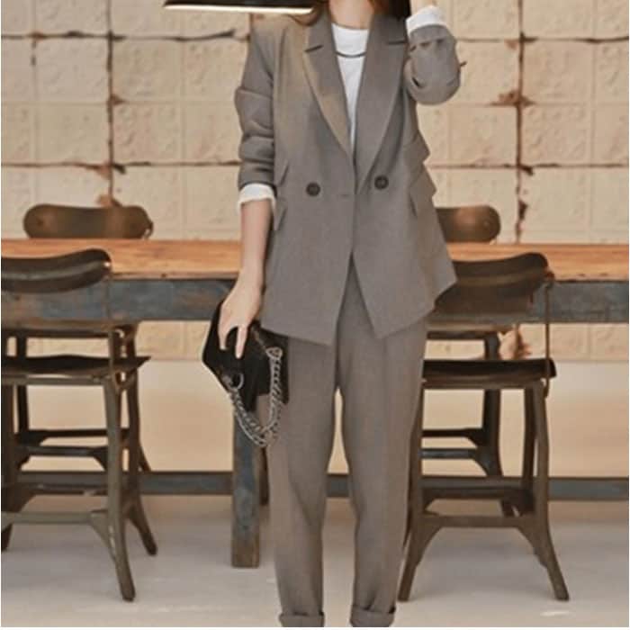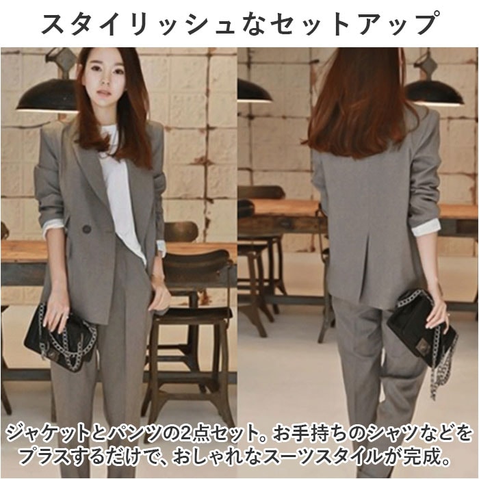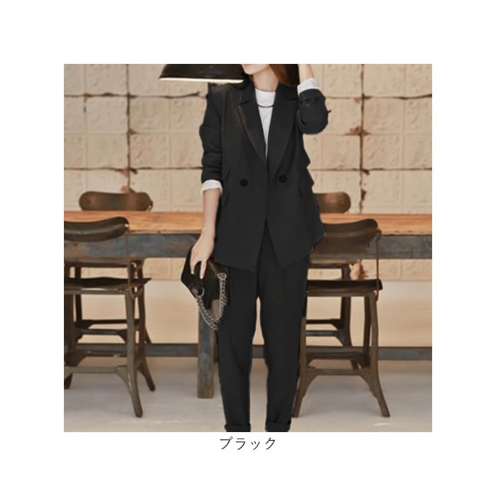 | 商品説明 | 色んなシーンで大活躍!かっこよくキマる、レディーススーツセットが新登場。【スタイリッシュなセットアップ】ジャケットとパンツの2点セット。お手持ちのシャツなどをプラスするだけで、おしゃれなスーツスタイルが完成。【存在感のあるダブルジャケット】フロントボタンが2列になったデザイン。ソフトな肩パッド入りで、美しいカタチをキープ&スッと羽織れる裏地付き。左右にはポケットを配置。【すっきり履けるロングパンツ】フロントファスナー&スライド金具で着脱でき、トップスをインした時もウエストまわりがすっきり見えるバックゴム仕様。左右にポケット付き。【体に負担をかけず着心地軽やか】程よい厚みの生地感で、サラッと着用できてストレスフリー◎【色んなシーンで活躍するカラー】落ち着きのあるベーシックカラーで、ビジネスやフォーマルシーンにぴったり。ジャケットポケット上のフェイクフラップがアクセントに。【カジュアルアレンジもOK】パンツの裾をロールアップして、スニーカーと合わせたスタイルも☆お好みやシーンに合わせてアレンジ自在! |