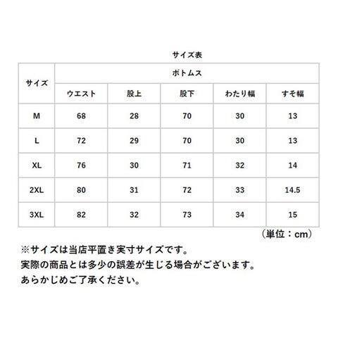| サイズ | [メンズ] ・Mサイズ ・Lサイズ ・XLサイズ ・2XLサイズ ・3XLサイズ ※サイズについて詳細は、商品画像の中にあるサイズ表をご覧くださいませ。 |