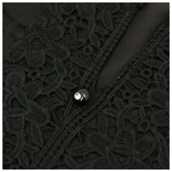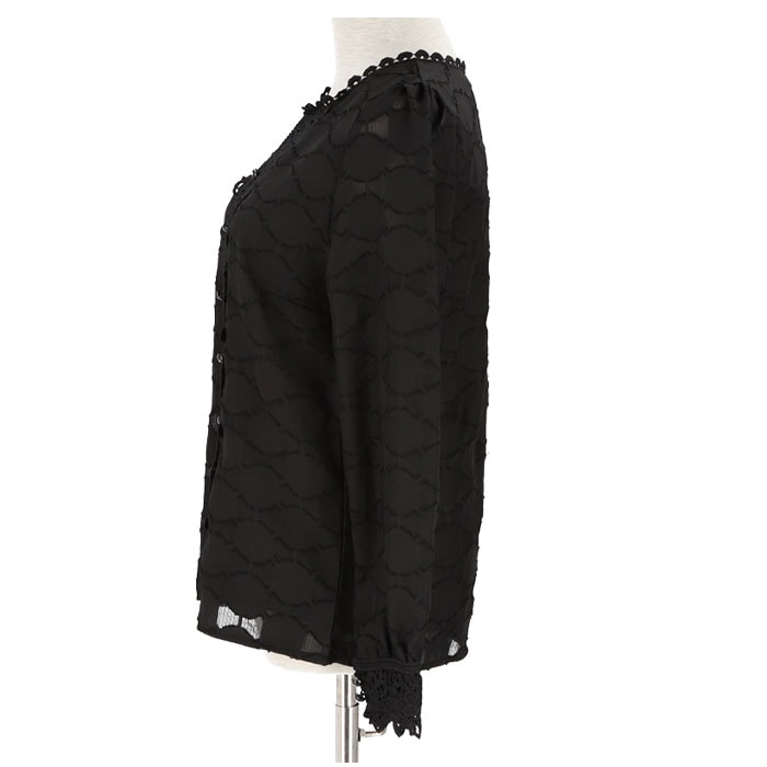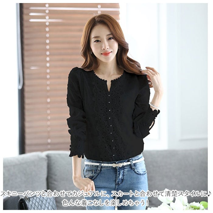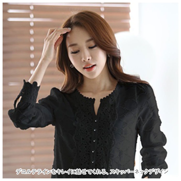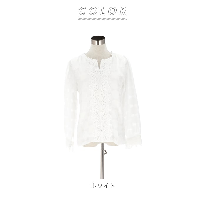 | 商品説明 | 甘くなりすぎないフェミニンコーデがキマる、レディースブラウス。さりげないドットデザインや、フロントと袖口のレース使いが上品な印象を演出。フロントと袖口の飾りボタンがアクセント。デコルテラインをキレイに魅せてくれる、スキッパーネックデザイン。スキニーパンツと合わせてカジュアルに、スカートと合わせて清楚スタイルに♪色んな着こなしを楽しめちゃう!お出かけにはもちろん、オフィスやフォーマルシーンでも活躍。 |