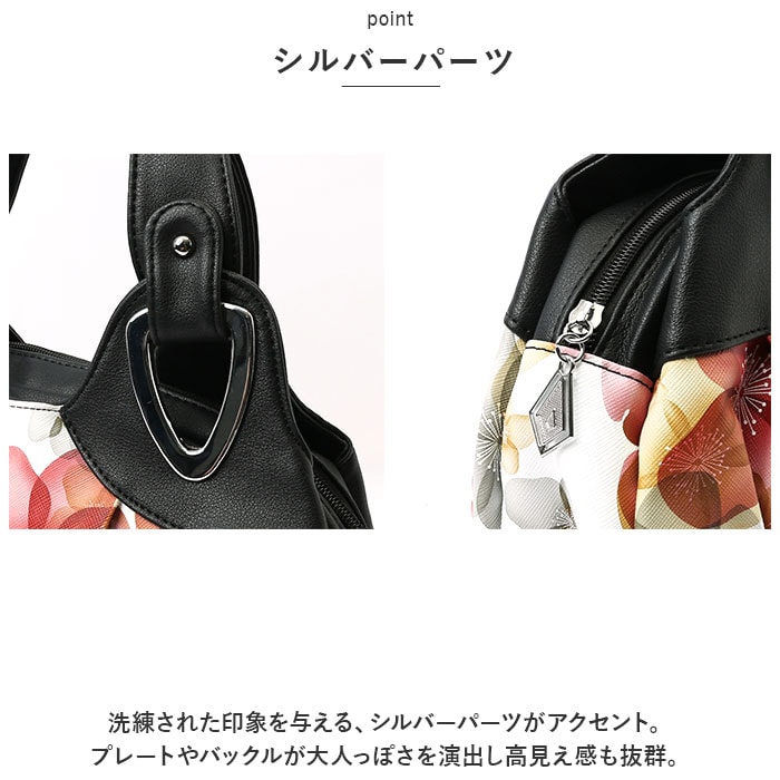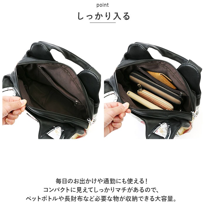 | 商品説明 | コロンと可愛いフォルムと上品なレザー感で、オトナ可愛い魅力♪「トートバッグ」が登場。【コロンとフォルム】コロンと可愛いフォルム。丸みのある柔らかい雰囲気で女性らしい印象に。ミニサイズで持ちやすく、お出かけにぴったり◎【しっかり入る】毎日のお出かけや通勤にも使える!コンパクトに見えてしっかりマチがあるので、ペットボトルや長財布など必要な物が収納できる大容量。【PUレザー】厚手で丈夫なPUレザーを使用。汚れに強く、お手入れがしやすいのも嬉しいポイント。上品なレザー感が魅力。【3ルーム】メイン収納の他に2つ収納がある3ルーム設計。荷物を整理整頓できる!バッグが自立する作りなので、荷物の出し入れがスムーズ。机や床に置いた時もクタっとならずに様になる。【シルバーパーツ】洗練された印象を与える、シルバーパーツがアクセント。プレートやバックルが大人っぽさを演出し高見え感も抜群。【軽量設計】バッグ本体の重さが気にならないので、たくさん荷物をいれてもOK。毎日使いたくなるアイテム。【選べるデザイン】デザインを豊富にご用意。ベーシックアイテムからゴージャスなデザインまで幅広くラインナップ♪お気に入りをチョイス。【ポケット使用】メイン収納:ファスナーポケット×1、オープンポケット×2 |