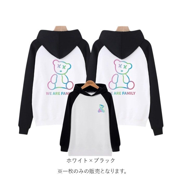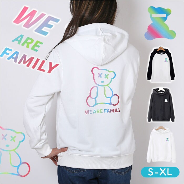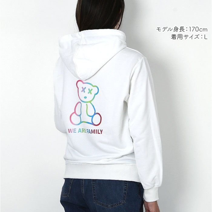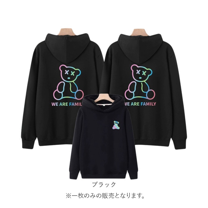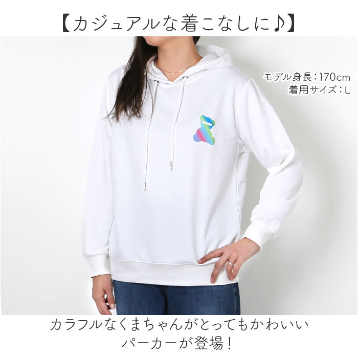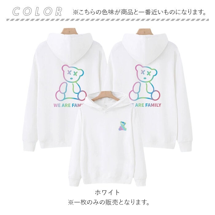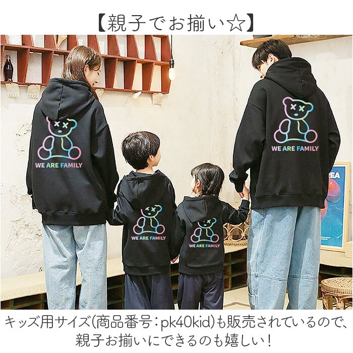 | 商品説明 | 【カジュアルな着こなしに♪】カラフルなくまちゃんがとってもかわいいパーカーが登場!【キュートなデザイン】胸元のワンポイントとバックに大きくプリントされたくまちゃんがとってもキュート☆【ロングシーズン活躍!】薄手で伸縮性があり、柔らかな着心地。アウターと重ね着しても着ぶくれしにくい!【体に優しくフィット】袖口と裾はリブ仕様になっていて、カジュアル感を演出。すっきりとしたシルエットに。【幅広いシーンで活躍】ストレスフリーな着心地でルームウェアとして使うのもGOOD。1枚で幅広いシーンに対応♪【親子でお揃い☆】キッズ用サイズ(商品番号:pk40kid)も販売されているので、親子お揃いにできるのも嬉しい! |