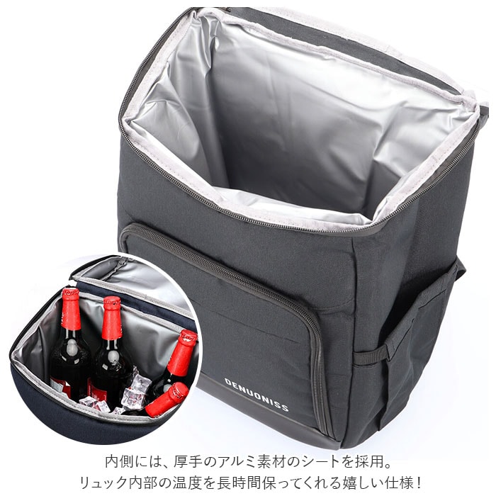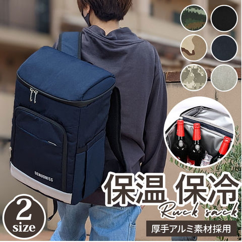 | 商品説明 | 大容量でたっぷり入る!リュックタイプのクーラーバッグが登場。メインスペース開口部はダブルファスナータイプで、中に入れたものがサッと取り出しやすい。内側には、厚手のアルミ素材のシートを採用。リュック内部の温度を長時間保ってくれる嬉しい仕様!保冷剤と一緒に使用すれば生ものや冷やしておきたいジュースなどの収納にも役立つ。フロントのラウンドファスナーを開くとオープンポケット×2、メッシュポケット×1を装備。最前面にファスナーポケット×1が付いており、小物が多くなっても仕分けて入れられる構造。両サイド側マチ付きのポケットがあり、ペットボトルや折りたたみ傘の収納におススメ。背面、ショルダーベルトにメッシュ素材のクッション材を使用しており、蒸れにくく快適な背負い心地。また、ショルダーベルトの右側にはアウトドアで活躍する便利な栓抜き付き。キャリーオンできるベルトも搭載し、より持ち運びがしやすい作りに。普段の買い物はもちろん、レジャーやキャンプでも活躍するアイテム。ノーマル、ラージサイズの2サイズから選べるのもポイント! |