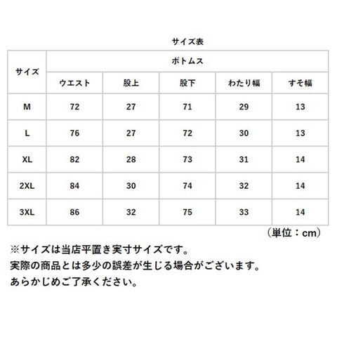 | サイズ | [メンズ] ・Mサイズ ・Lサイズ ・XLサイズ ・2XLサイズ ・3XLサイズ ※サイズについて詳細は、商品画像の中にあるサイズ表をご覧くださいませ。 |