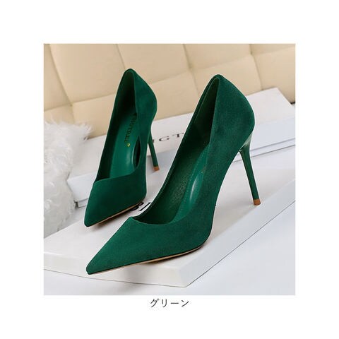 ハイヒール パンプス 美脚 ポインテッドトゥ 9cm【グリーン】【38(24cm)】