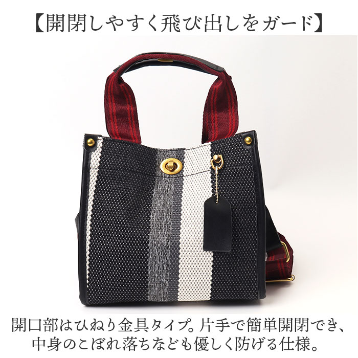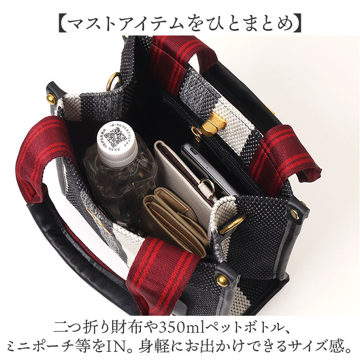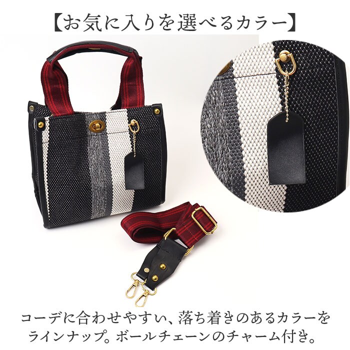 | 商品説明 | 【コーデのおしゃれなワンポイントに】シンプルスタイルに映えるデザイン♪こなれ感がアップする「トートバッグ」スモールサイズ。【おしゃれで目を惹くミックスカラー】複数のカラーを組み合わせた、絶妙な色使いが魅力◎ラフなコーデもグンと大人な雰囲気に。【お好みに合わせてスタイルチェンジ】ハンドバッグとして♪長さ調節可能なショルダーを取り付け肩掛けや斜め掛けも自在な2way☆【型崩れしにくいスクエアバッグ】ガシガシ使える丈夫な素材。ソフトな底板も内蔵しており、荷物を入れてもフォルムをキープ。【開閉しやすく飛び出しをガード】開口部はひねり金具タイプ。片手で簡単開閉でき、中身のこぼれ落ちなども優しく防げる仕様。【マストアイテムをひとまとめ】二つ折り財布や350mlペットボトル、ミニポーチ等をIN。身軽にお出かけできるサイズ感。【サクッと取り出せて迷子知らず】内側に1つポケットを配置。鍵などの細々した物も、バッグの中で探す手間が不要。【お気に入りを選べるカラー】コーデに合わせやすい、落ち着きのあるカラーをラインナップ。ボールチェーンのチャーム付き。【ポケット仕様】内側:ファスナーポケット×1 |