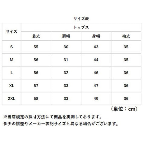 | サイズ | [レディース] ・Sサイズ ・Mサイズ ・Lサイズ ・XLサイズ ・2XLサイズ ※サイズについて詳細は、商品画像の中にあるサイズ表をご覧くださいませ。 |
