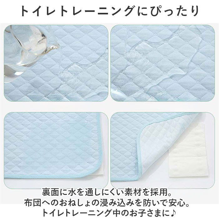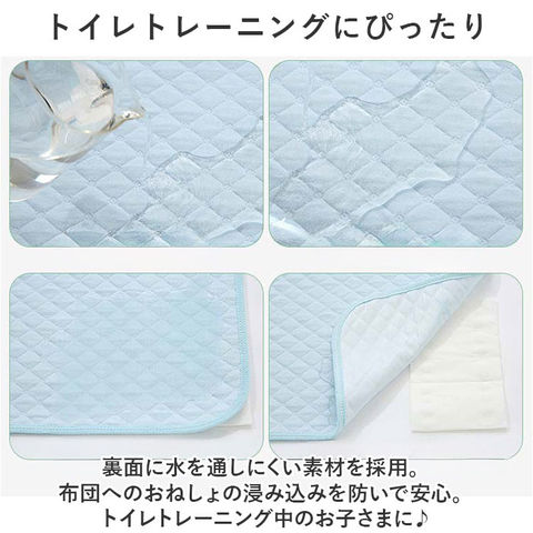 | 商品説明 | お子さまのおねしょをガード!サッと広げて使える「おねしょシーツ」2点セット。【トイレトレーニングにぴったり】裏面に水を通しにくい素材を採用。布団へのおねしょの浸み込みを防いで安心。トイレトレーニング中のお子さまに♪【サラッと柔らかで寝心地快適】表面は素肌に優しいコットン素材。汗ばむ季節はムレにくく、寒い季節はふんわりあったか。【軽量&コンパクトで使い勝手抜群】手に取りやすく、扱いやすい軽やかさとサイズ感。折りたためばかさばることなく、収納も省スペース。【ベビーのおむつ替えにも重宝】自宅や外出先でのおむつ替えの際、シーツを敷いて寝かせれば汚れを気にする心配不要。【介護やペット、女性周期の対策にも】介護を必要とされるご家族、ペットや女性周期の漏れが気になるシーンで活躍。【自宅で手洗いできて衛生的】汚れが気になったら、自宅で手洗い可能。いつも清潔をキープ◎【寝具に馴染むシンプルデザイン】シンプルな無地&柔らかなナチュラルカラー。洗い替えに便利な2点セット。 |