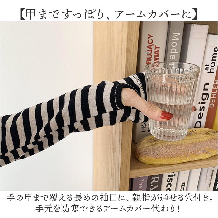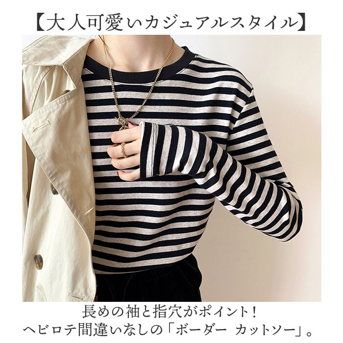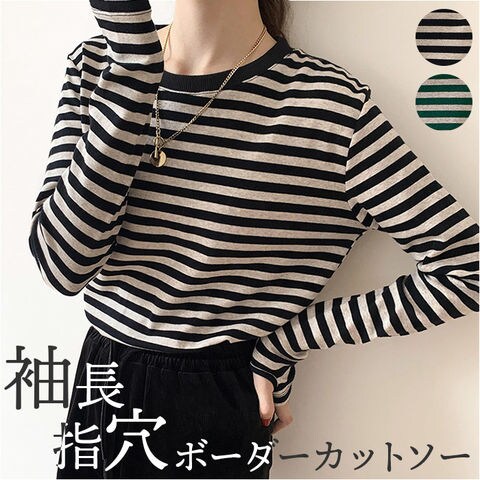 | 商品名 | 袖長め 指穴 ボーダー カットソー レディース |