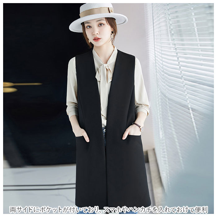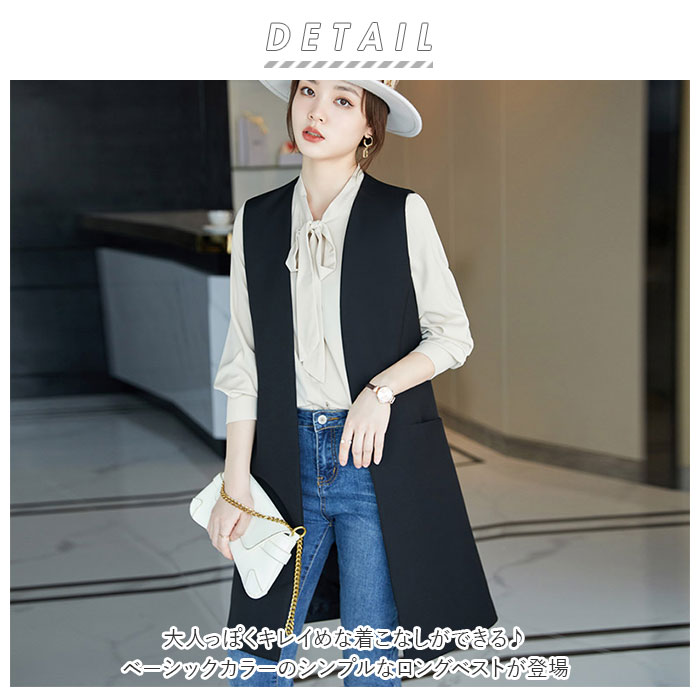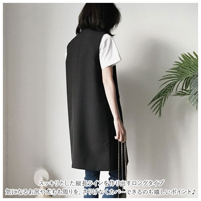| 商品説明 | 大人っぽくキレイめな着こなしができる♪ベーシックカラーのシンプルなロングベストが登場。スッキリとした縦長ラインを作り出すロングタイプ。気になるお尻や太もも周りを、さりげなくカバーできるのも嬉しいポイント♪両サイドにポケットが付いており、スマホやハンカチを入れておけて便利。程よい厚みのあるしっかりとした生地感。ボタンは付けず羽織りのようなデザインなので、ボトムスとのバランスも取りやすい◎Tシャツの上にサラッと羽織るだけで、トレンド感のあるコーデにキマる♪ |