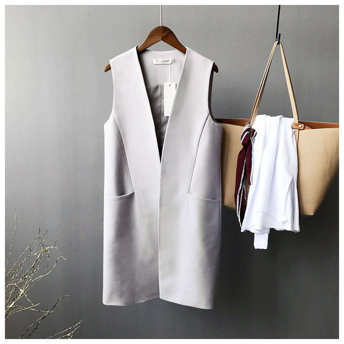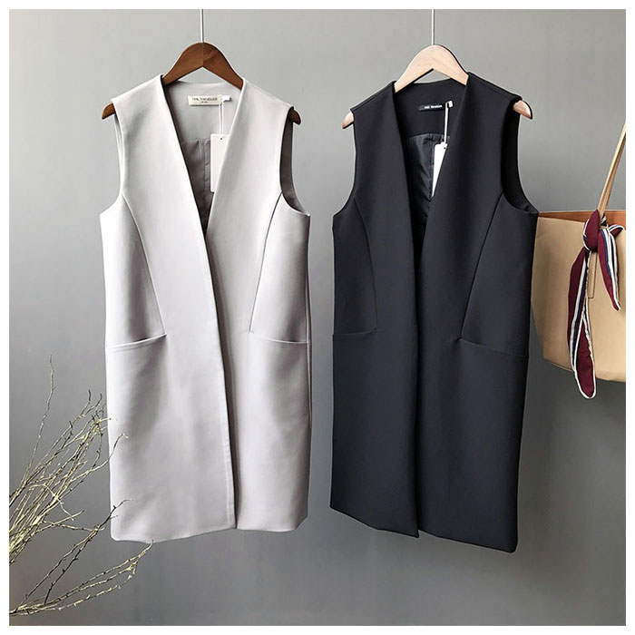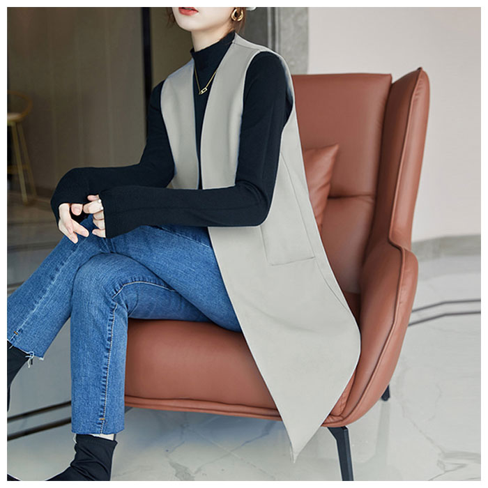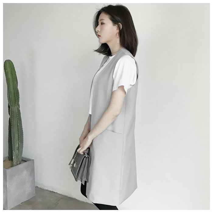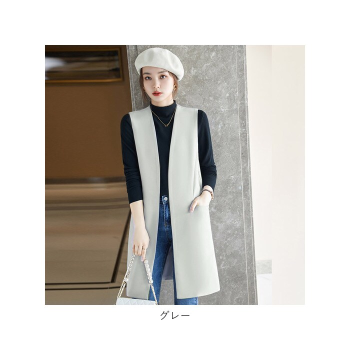 ロングベスト レディース pk635【グレー】【XLサイズ】