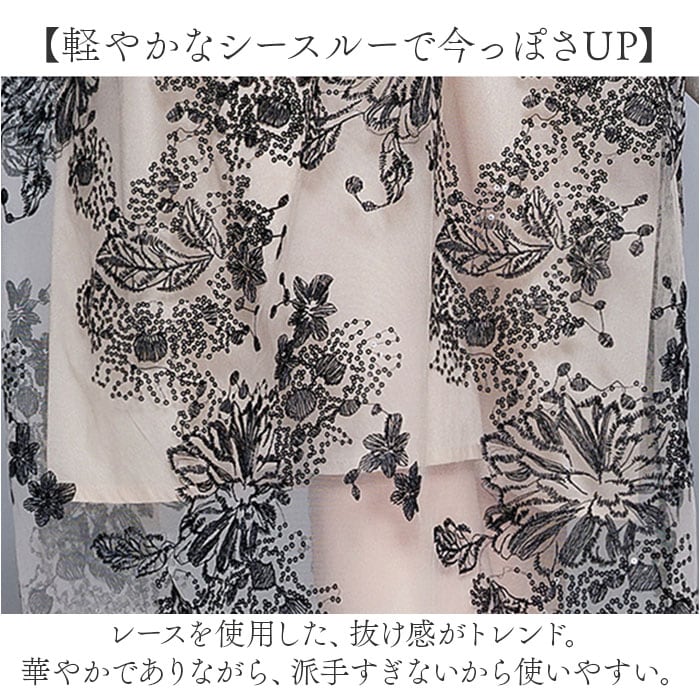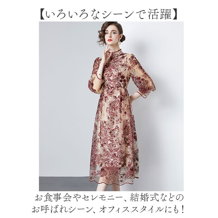 | 商品説明 | 【レーシーデザインでクラシカルに☆】これ1枚で華やかに仕上がる!パーティードレス ミモレ丈 ワンピースが登場。【大人クラシカルな雰囲気が魅力】首元まで詰まった露出少なめのデザインが大人っぽい。上品でクラシカルに仕上がる♪【軽やかなシースルーで今っぽさUP】レースを使用した、抜け感がトレンド。華やかでありながら、派手すぎないから使いやすい。【スパンコールをキラリとトッピング】ところどころにスパンコールを配置し、着映えする存在感を発揮。アクセサリーいらずの輝き。【スタイルアップしてくれるAライン】身体のラインをキレイに魅せる、ハイウエストから広がるAラインスカート。女性らしさがUP。【ロングシーズンOKの七分袖】露出を抑えた長めの7分袖。季節を問わずロングシーズン着用できるのも嬉しいポイント。【いろいろなシーンで活躍】お食事会やセレモニー、結婚式などのお呼ばれシーン、オフィススタイルにも! |