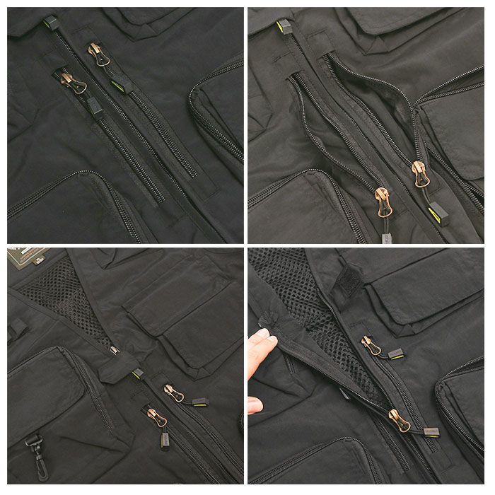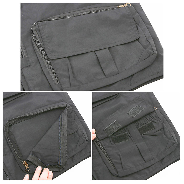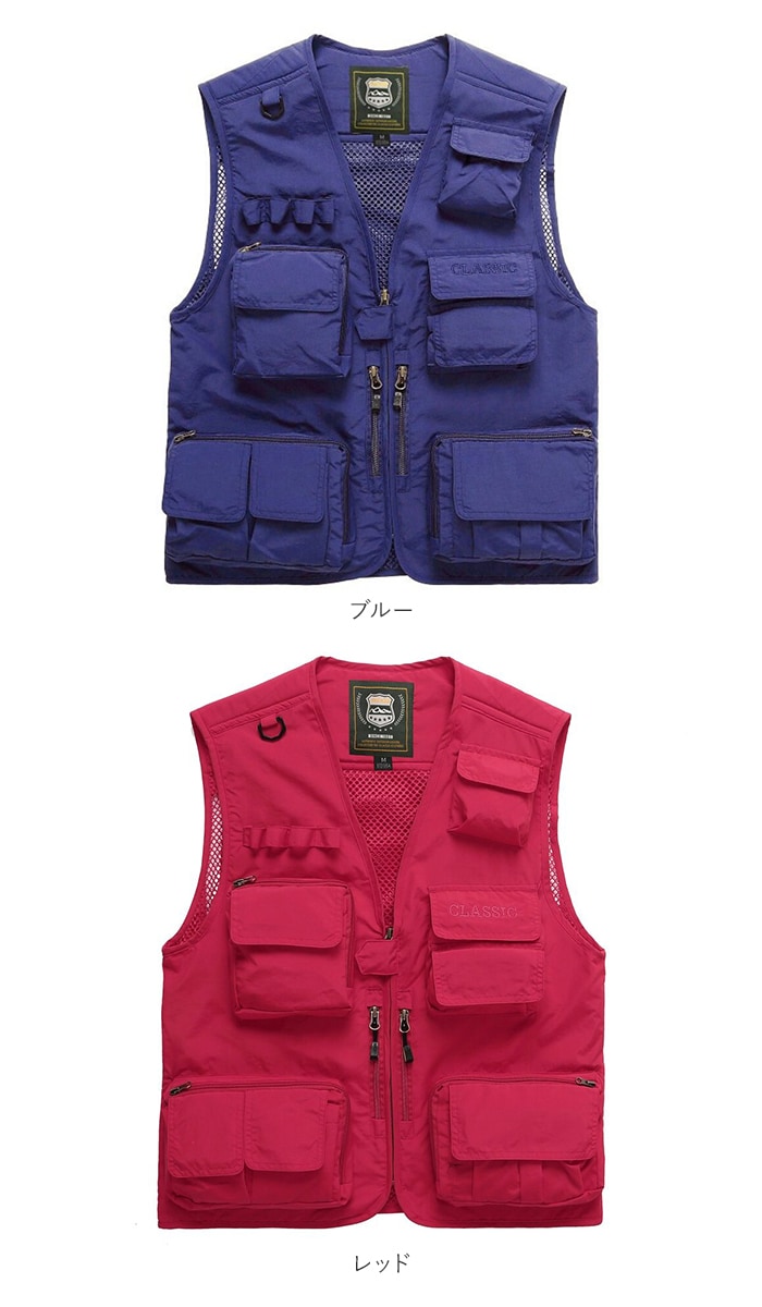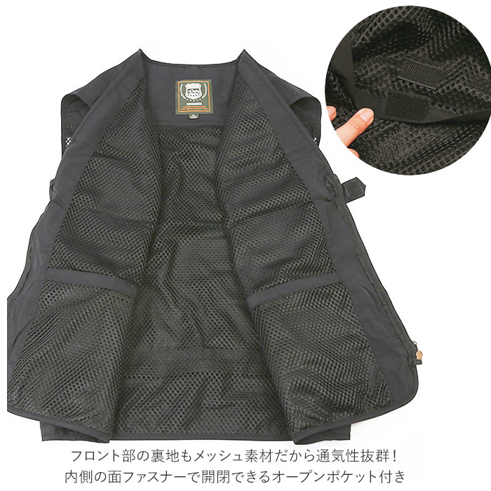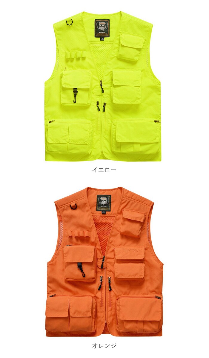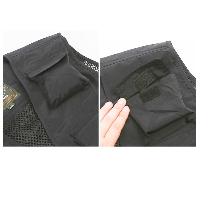 | 商品説明 | 幅広いアウトドアレジャーに使える♪軽量のメンズベストが登場。収納性重視なデザインで、バッグがいらないくらいのポケット数があり、荷物の量を少なくしたい方にもおススメなアイテム。フロントの右胸にはループ×4、下のフラップポケットにキーフックを装備。フロント部だけでもファスナーポケット、フラップポケット合わせて12ポケット仕様。背面に大きなファスナーポケットを装備。使わない時はクルクル丸めて裾のファスナーポケットに収納可能。背中部分は全体的にメッシュ生地を使用し、ファスナーポケットをしまえば夏用のメッシュベストに早変わり♪フロント右胸と背中にはDカンがあり、ちょっとした荷物や細い枝にかけるのに便利♪フロント部の裏地もメッシュ素材だから通気性抜群!内側の面ファスナーで開閉できるオープンポケット付き。薄手な生地感でアウターとしてや、上にコートやジャケットなどを羽織っても動きやすいのもポイント。 |