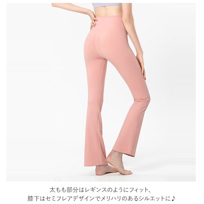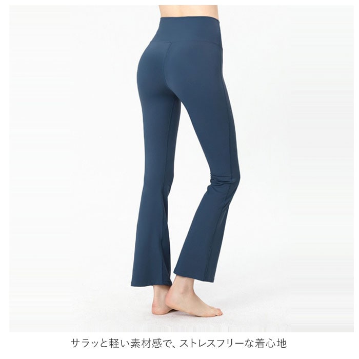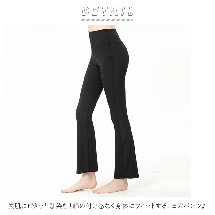 | 商品説明 | 素肌にピタッと馴染む!締め付け感なく身体にフィットする、ヨガパンツ♪ウエスト部分を締め付け過ぎないハイウエストデザイン。お腹・お尻周りを優しくホールド!太もも部分はレギンスのようにフィット、膝下はセミフレアデザインでメリハリのあるシルエットに♪サラッと軽い素材感で、ストレスフリーな着心地。伸縮性にも優れているので、アクティブに動ける♪ランニングやジムでのトレーニング、ヨガはもちろん、デイリーウェアやリラックスウェアとしても活躍。ご自宅で手洗いOK。色違いで持っていたいアイテム! |