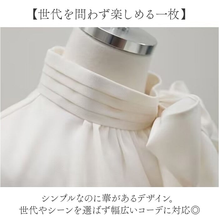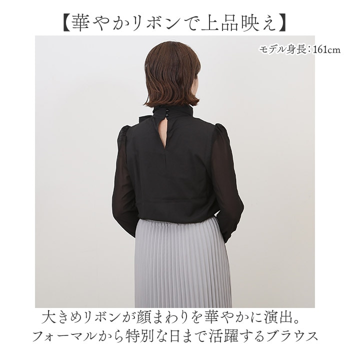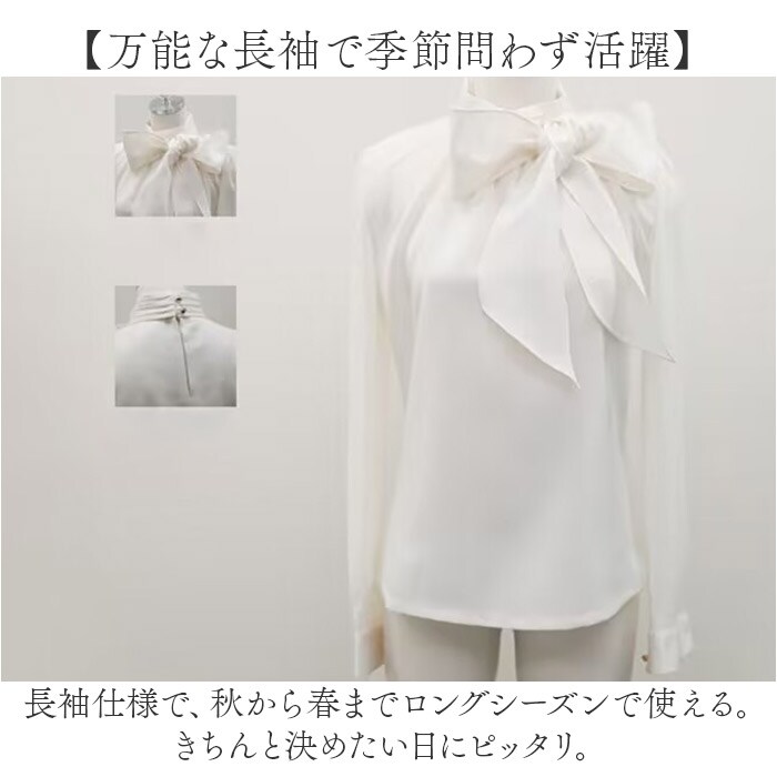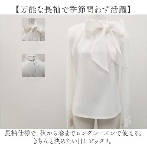 | 商品説明 | 【華やかリボンで上品映え】大きめリボンが顔まわりを華やかに演出。フォーマルから特別な日まで活躍するブラウス【柔らかシフォンの優しい肌触り】なめらかで軽いシフォン素材。やわらかな着心地で、長時間の着用も快適。【ママさんのセレモニーコーデに】上品なデザインでセレモニーシーンにも最適。卒業式・入園式・七五三におすすめ☆【万能な長袖で季節問わず活躍】長袖仕様で、秋から春までロングシーズンで使える。きちんと決めたい日にピッタリ。【暑い季節にも対応】スリーブは程よい透け感のあるシアー素材を使用し、暑い時期でも着られる。【オフィスカジュアルにも】シンプルなデザインで、黒や紺系のスキニーパンツと合わせてオフィスカジュアルにも。【世代を問わず楽しめる一枚】シンプルなのに華があるデザイン。世代やシーンを選ばず幅広いコーデに対応◎ |