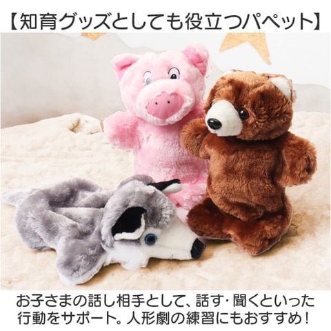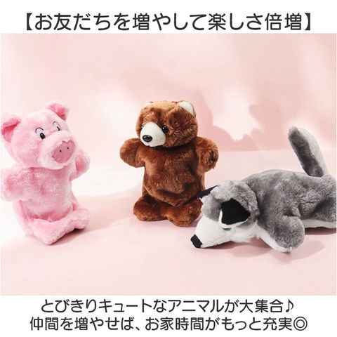 商品説明【アニマルたちと仲良く遊ぼう☆】愛らしい姿に、お子さまも大喜び♪遊び方いろいろ「アニマル パペットぬいぐるみ」。【知育グッズとしても役立つパペット】お子さまの話し相手として、話す・聞くといった行動をサポート。人形劇の練習にもおすすめ!【ベビーからキッズまで幅広い年代に】手を入れて自由に動かせる!ぐずってしまったベビーをあやしたり、絵本の読み聞かせにプラス。【ごっこ遊びや創作遊びにも最適】お子さまが嫌がる歯磨きや食べる真似をしたり♪パペットを登場人物にした物語を作るのもOK。【ムレにくく使用時のストレスを軽減】内側はサラリとしたメッシュ生地。長時間手を入れて遊んでも快適な着用感。【お友だちを増やして楽しさ倍増】とびきりキュートなアニマルが大集合♪仲間を増やせば、お家時間がもっと充実◎