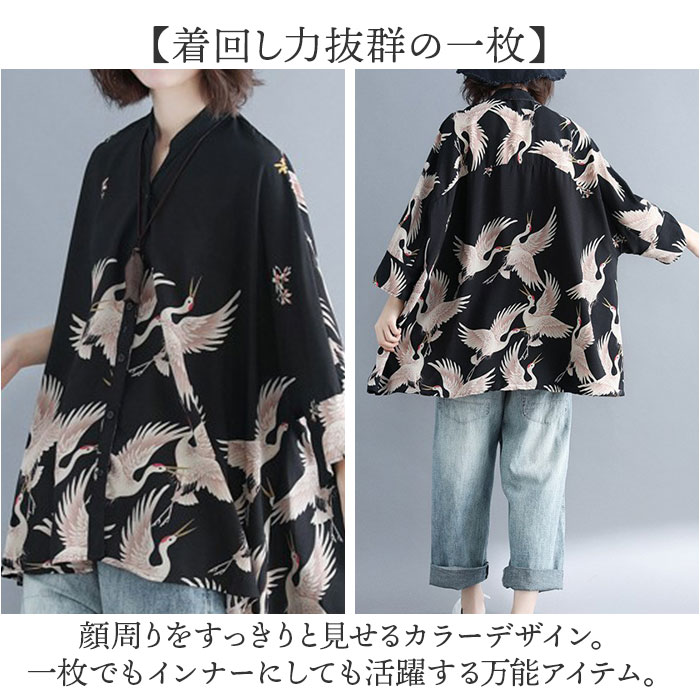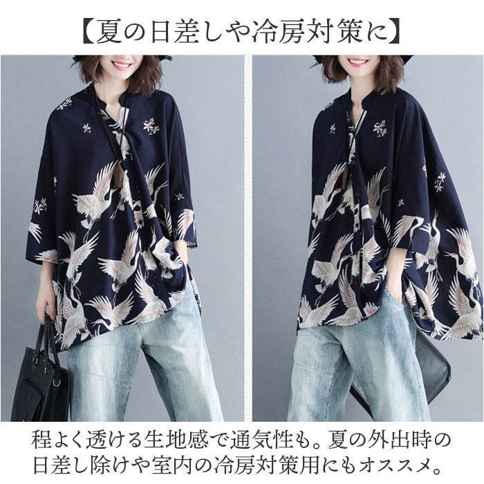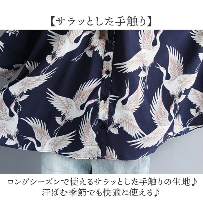 | 商品説明 | 【大人モダンに着こなせる】鶴のデザインがポイント☆大人モダンに着こなせるレディースブラウスが発売☆【着回し力抜群の一枚】顔周りをすっきりと見せるカラーデザイン。一枚でもインナーにしても活躍する万能アイテム。【ドロップショルダー】肩の落ち感がポイント。こなれた印象を与え、ゆったり感のあるスタイリングが楽しめる。【サラッとした手触り】ロングシーズンで使えるサラッとした手触りの生地♪汗ばむ季節でも快適に使える♪【夏の日差しや冷房対策に】程よく透ける生地感で通気性も。夏の外出時の日差し除けや室内の冷房対策用にもオススメ。【体型カバー効果もアリ】すとんとしたシルエットとお尻周りまでカバーする後着丈は体型カバーにも効果的な作りに。 |