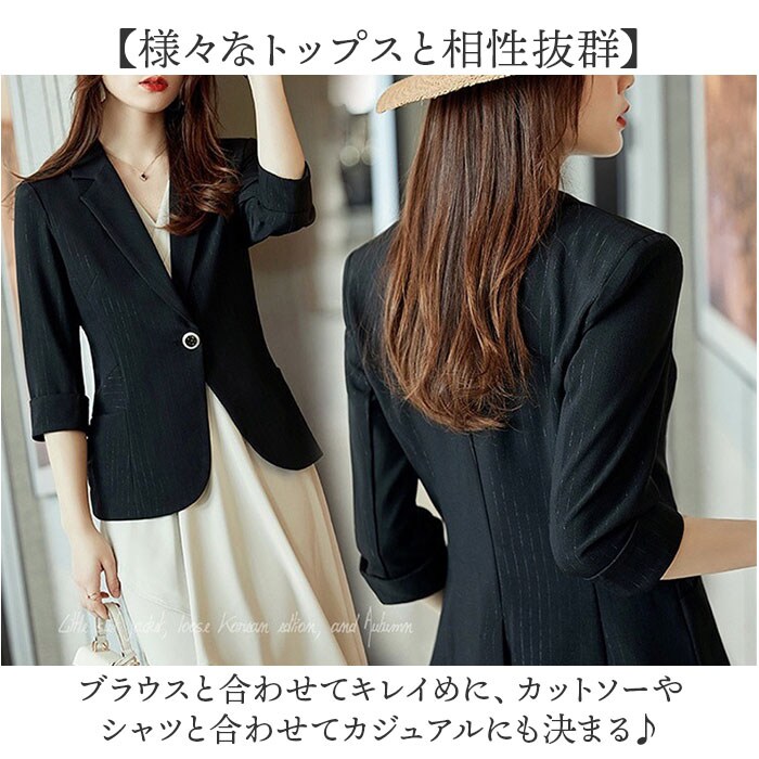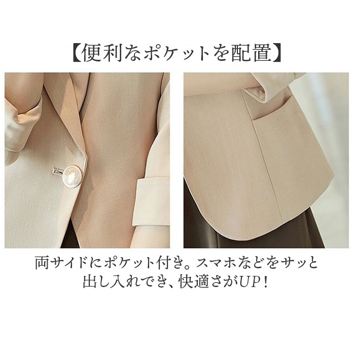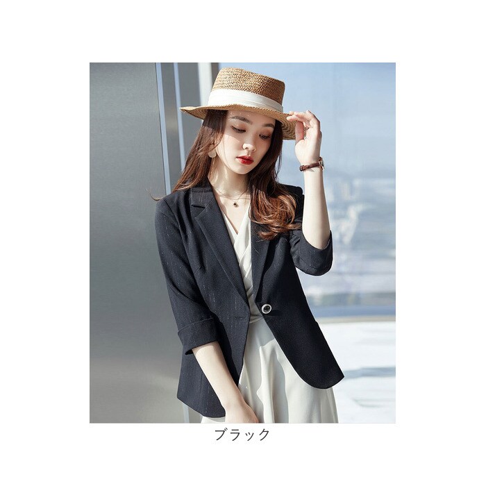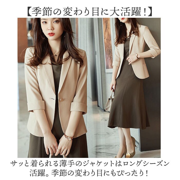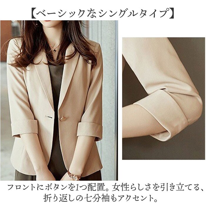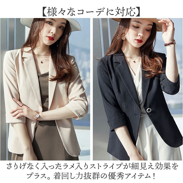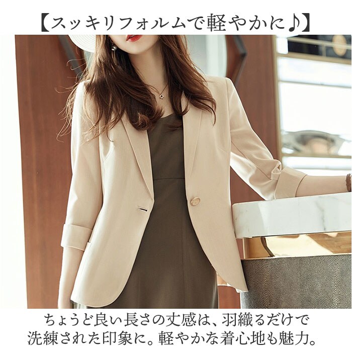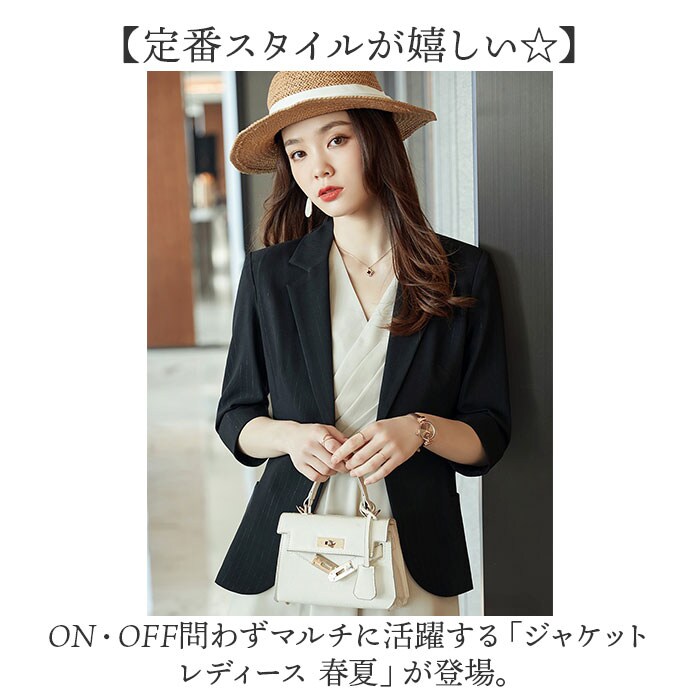 | 商品説明 | 【定番スタイルが嬉しい☆】・ON・OFF問わずマルチに活躍する「ジャケット レディース 春夏」が登場。【様々なトップスと相性抜群】ブラウスと合わせてキレイめに、カットソーやシャツと合わせてカジュアルにも決まる♪【スッキリフォルムで軽やかに♪】ちょうど良い長さの丈感は、羽織るだけで洗練された印象に。軽やかな着心地も魅力。【季節の変わり目に大活躍!】サッと着られる薄手のジャケットはロングシーズン活躍。季節の変わり目にもぴったり!【ベーシックなシングルタイプ】フロントにボタンを1つ配置。女性らしさを引き立てる、折り返しの七分袖もアクセント。【便利なポケットを配置】両サイドにポケット付き。スマホなどをサッと出し入れでき、快適さがUP!【様々なコーデに対応】さりげなく入ったラメ入りストライプが細見え効果をプラス。着回し力抜群の優秀アイテム! |
