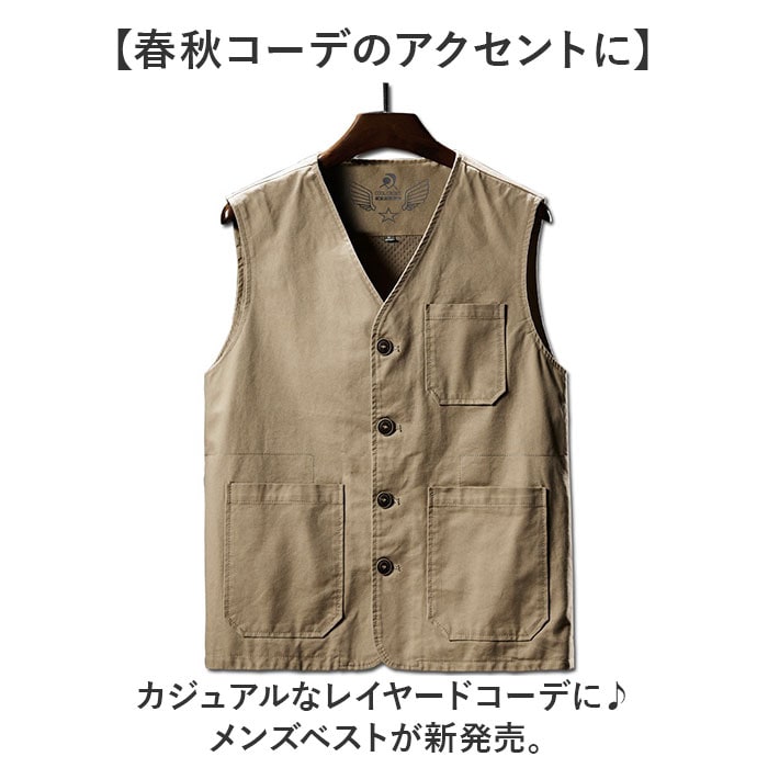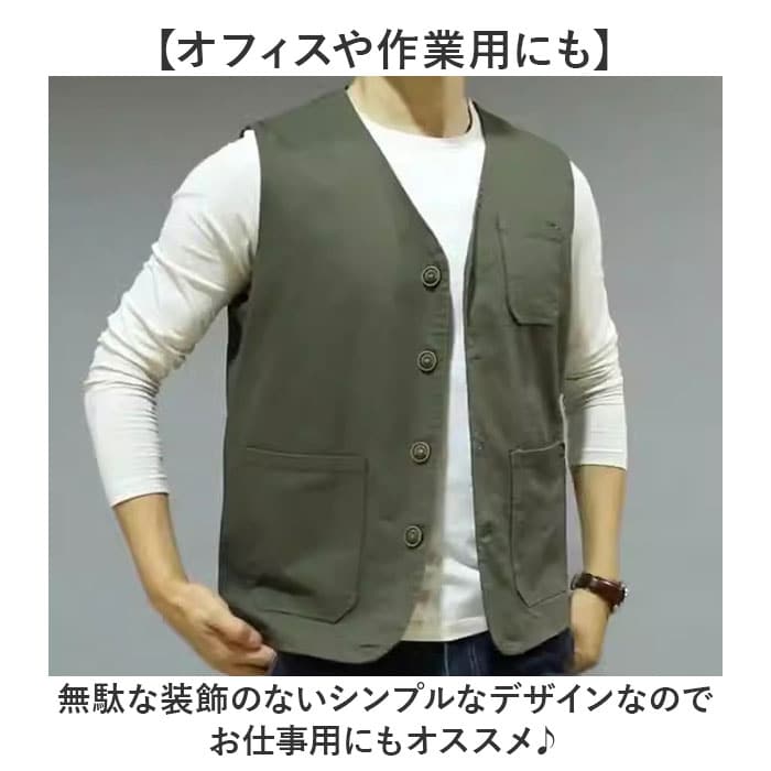 | 商品説明 | 【春秋コーデのアクセントに】カジュアルなレイヤードコーデに♪メンズベストが新発売。【様々なコーデに使える生地感】肌寒い時の防寒やアウターの中に着こんでも着ぶくれしない薄手の生地。【オフィスや作業用にも】無駄な装飾のないシンプルなデザインなのでお仕事用にもオススメ♪【ムレにくいメッシュ素材を使用】内側はメッシュ素材を使用しているので、ムレにくく1日中着てもストレスフリー☆【機能性もあるポケットデザイン】メモやペン、スマホなどちょっとした小物を入れられるポケットを3つ配置。【ミニ財布や鍵入れに】貴重品を入れるのに便利なサイズのポケットを内側に配置。【選べる豊富なカラー&サイズ】シックな色合いがおしゃれなカラーと幅広いサイズをご用意。自分にぴったりなモノが見つかる。 |