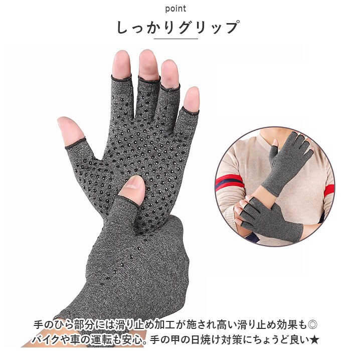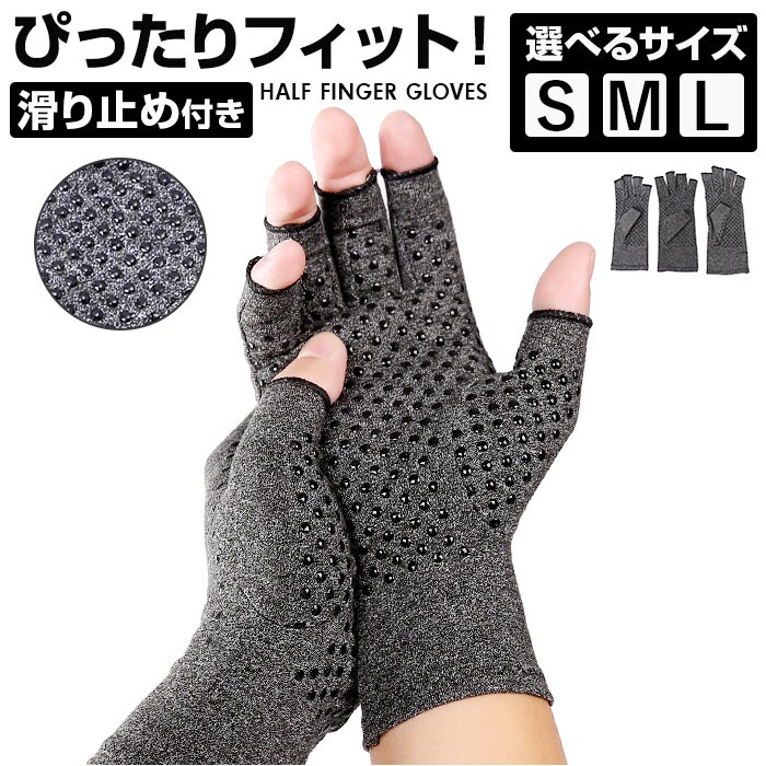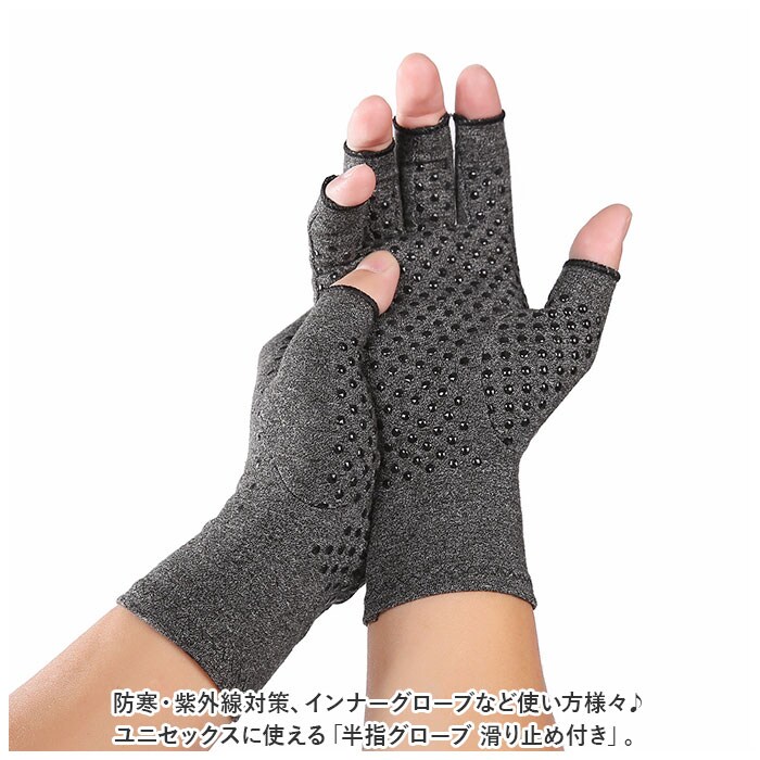 半指グローブ 滑り止め付き pka0046【グレー】【M】