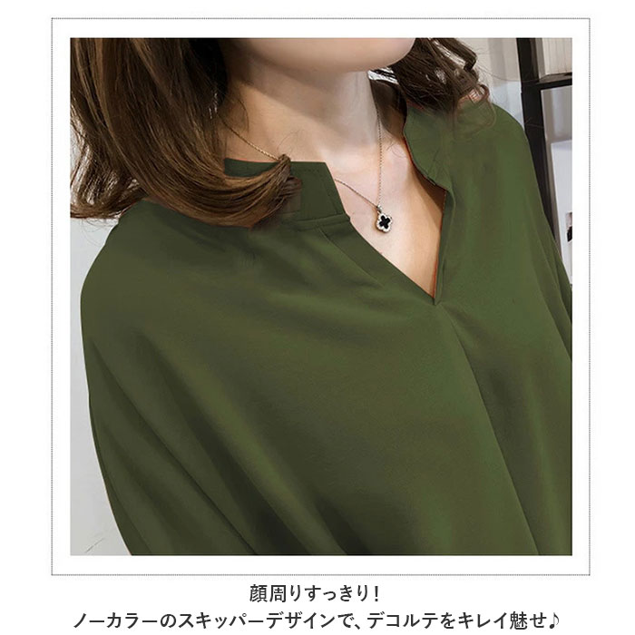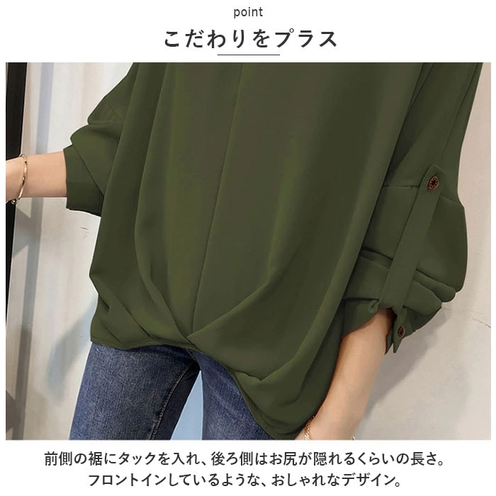 | 商品説明 | 大人な印象を演出!シンプルなブラウスが新登場。【着心地軽やか】サラッとした手触りのコットンポリエステル混紡素材。【顔周りすっきり】ノーカラーのスキッパーデザインで、デコルテをキレイ魅せ♪【こだわりをプラス】前側の裾にタックを入れ、後ろ側はお尻が隠れるくらいの長さ。フロントインしているような、おしゃれなデザイン。【ゆったりシルエット】締めつけ感がなくストレスフリー◎身体のラインをふんわりカバーできるのも嬉しいポイント。【袖丈はアレンジOK】ボタンで袖の長さを2パターンチェンジ!【大人コーデの完成】お手持ちのスキニーパンツなどと相性抜群! |