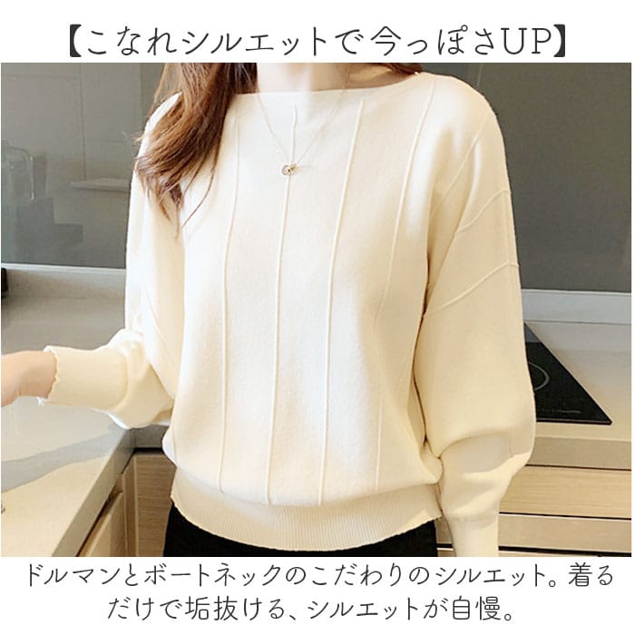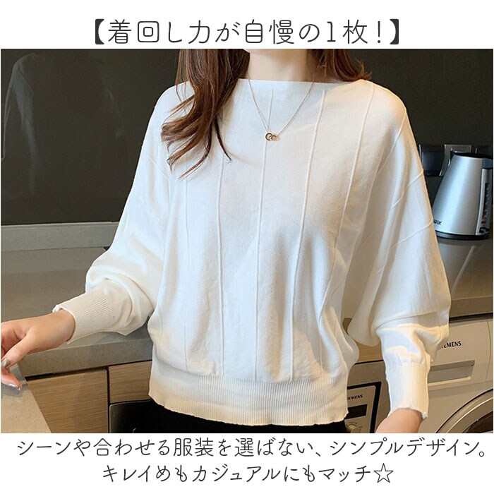 商品説明【ボートネックのこなれシルエット♪】体型カバーもできるドルマンニット。「きれいめ ニットトップス」が登場。【着回し力が自慢の1枚!】シーンや合わせる服装を選ばない、シンプルデザイン。キレイめもカジュアルにもマッチ☆【こなれシルエットで今っぽさUP】ドルマンとボートネックのこだわりのシルエット。着るだけで垢抜ける、シルエットが自慢。【チクチクしにくい素材で安心】ニットが苦手な方にもオススメの、サラっとした薄手の生地。チクチクしにくい快適な肌触り。【縦ラインで着?せ効果あり◎】シンプルに見えて、さりげなく縦ラインのアクセント。縦長に見えるから、着痩せ効果も◎【お好みのカラーをチョイス!】定番カラーから差し色まで広くご用意。お好みカラーや、イロチ買いするのもGOOD。