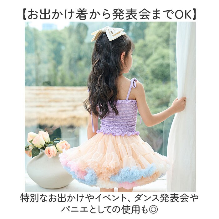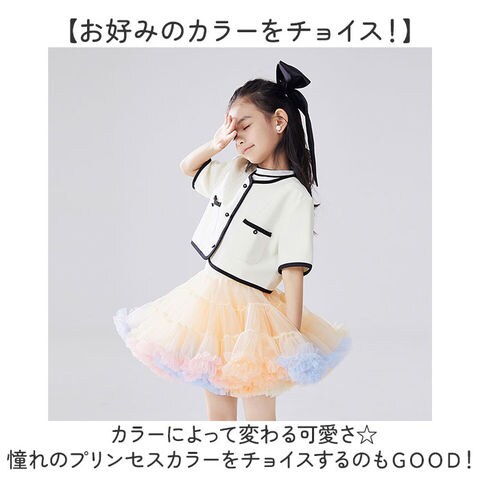 チュチュスカート スカート 女の子【オレンジ×カラフル】【L】