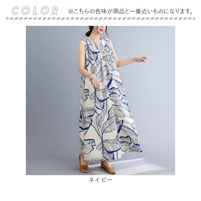 ワンピース マキシワンピース リゾートワンピ【ネイビー】【L】