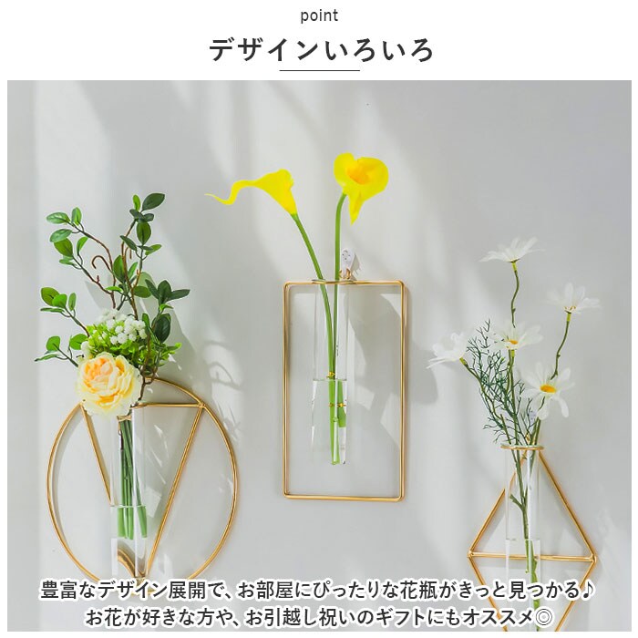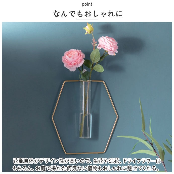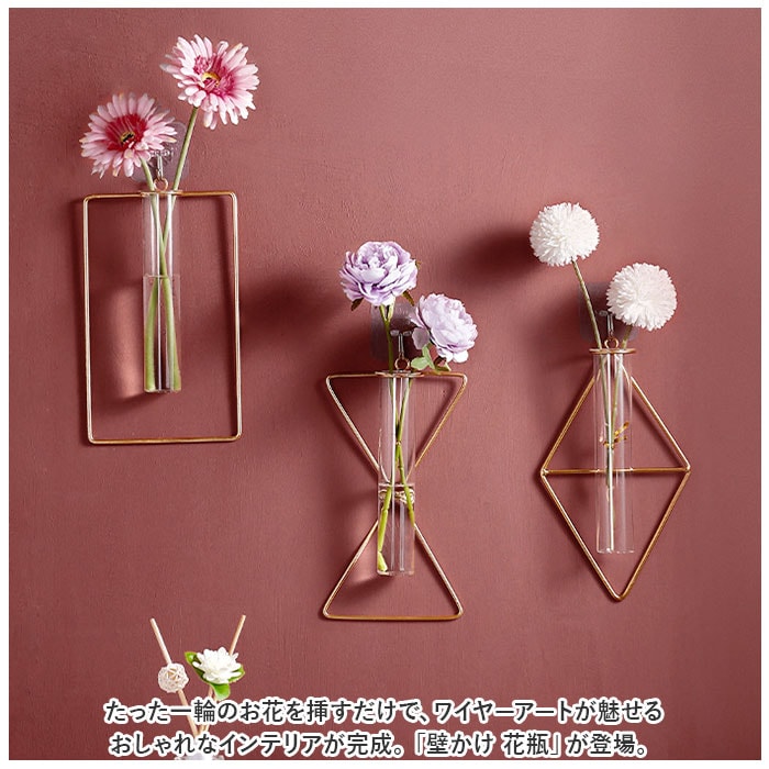 | 商品説明 | たった一輪のお花を挿すだけで、ワイヤーアートが魅せるおしゃれなインテリアが完成。「壁かけ 花瓶」が登場。【ワイヤーアートデザイン】ワイヤーアートのフラワーベース。シンプルながらも斬新なデザインで、お部屋のインテリアとして抜群の存在感。ワイヤーアートが魅せる、華奢なシルエットが魅力。【壁掛けタイプ】お子様やペットがいるので、花瓶が置けない...そんなご家庭にもぴったりな花瓶。お花を飾る棚がないお部屋にも置け、どこでも飾れるのがメリットの壁掛けタイプ。【なんでもおしゃれに】花瓶自体がデザイン性が高いので、生花や造花、ドライフラワーはもちろん、お庭で採れた何気ない植物もおしゃれに魅せてくれる。【フックつき】専用の壁掛けフックがついているので、届いてすぐに設置可能。簡単に取り付けできるのも嬉しいポイント。【デザインいろいろ】豊富なデザイン展開で、お部屋にぴったりな花瓶がきっと見つかる♪お花が好きな方や、お引越し祝いのギフトにもオススメ◎ |