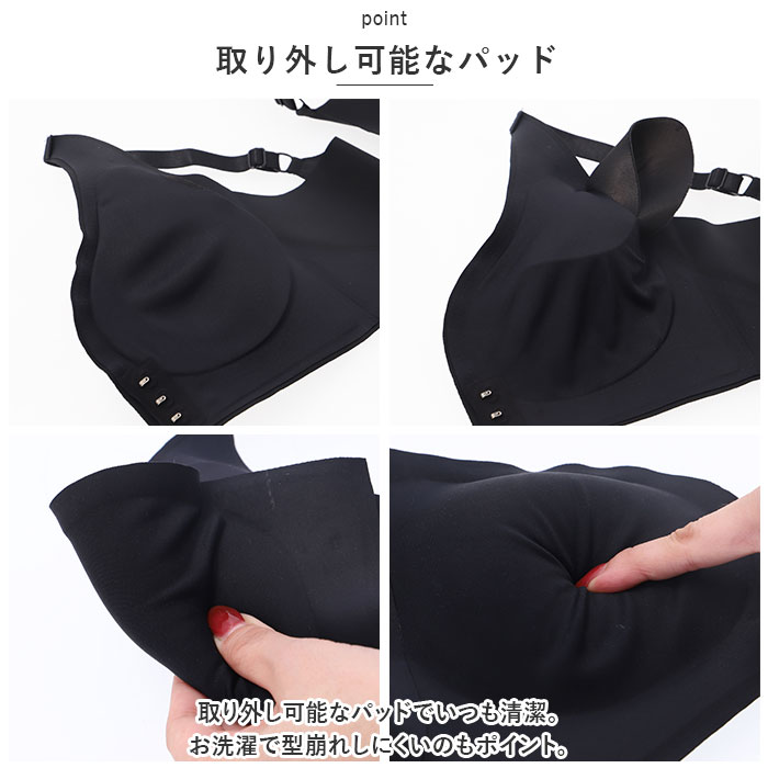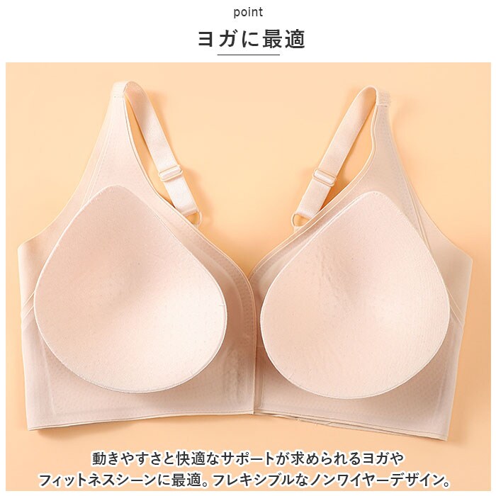 | 商品説明 | 締め付け感ゼロのやさしい着け心地なノンアワイヤーブラが登場。【フロントホックの楽チン】手軽に着脱できるフロントホック。快適さを追求。【幅広アンダー&ストラップ】ノンワイヤーだけど、しっかりホールドする幅広アンダーと肩の負担軽減する幅広ストラップで安定感抜群。【Vライン背中仕上げ】美しい背中ラインを演出するVライン仕上げで女性らしいシルエットを演出。【取り外し可能なパッド】取り外し可能なパッドでいつも清潔。お洗濯で型崩れしにくいのもポイント。【シームレスデザイン】洋服に響きにくいシームレスデザイン。タイトなトップスやボトムスのインナーにピッタリ!【ヨガに最適】動きやすさと快適なサポートが求められるヨガやフィットネスシーンに最適。フレキシブルなノンワイヤーデザイン。【ナイトブラとしても】締め付け感のない快適な着け心地。ナイトブラとしてもおすすめ。リラックスした睡眠へ。 |