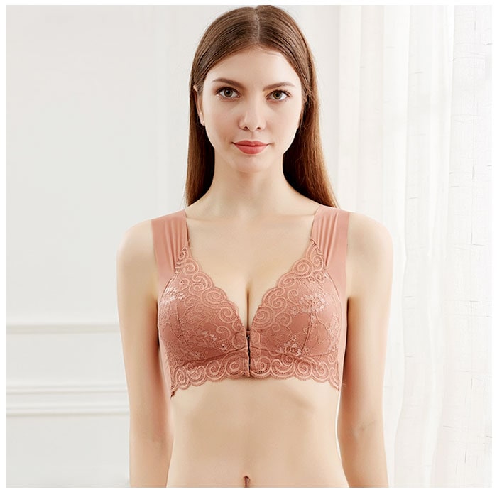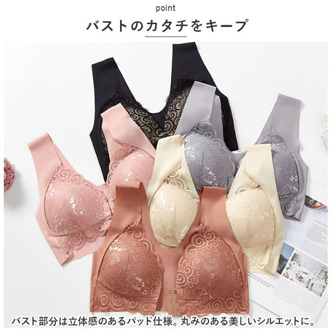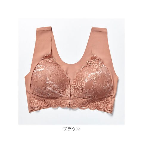 | 商品説明 | バストを心地よくホールド♪フロントホック仕様のノンワイヤーブラが新登場。【締めつけ感のないノンワイヤータイプ】窮屈感が苦手な方にぴったり!ストレスフリーな付け心地◎【着脱ラクチンなフロントホックタイプ】・2段階調節可能な、フロント3段ホック。サッと着脱できて、授乳時にも便利!【バストのカタチをキープ】バスト部分は立体感のあるパッド仕様。丸みのある美しいシルエットに。【脇高設計】バストの揺れを抑え、横流れを防止。サイドから寄せて谷間をメイク♪【幅広ストラップ】食い込みにくく、肩にかかる負担を軽減。【背中までホールド】いや~なズレを防ぐU字のバックライン。折り返し縫いのないヘム仕上げなので、着心地ばっちり◎【上品な雰囲気をプラス】カップ部分にレースデザインを取り入れ、華やかさアップ。【汗ばむ季節も快適】サラッとした肌触りで、汗ばむ季節もムレにくい♪ナイトブラやマタニティブラとしても大活躍! |
