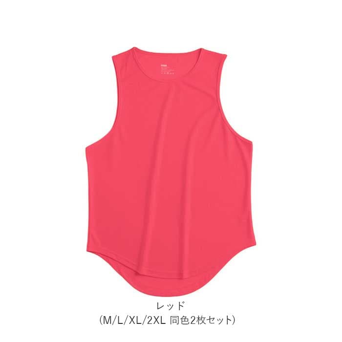 タンクトップ メンズ ノースリーブ 2点セット【レッド】【XL】