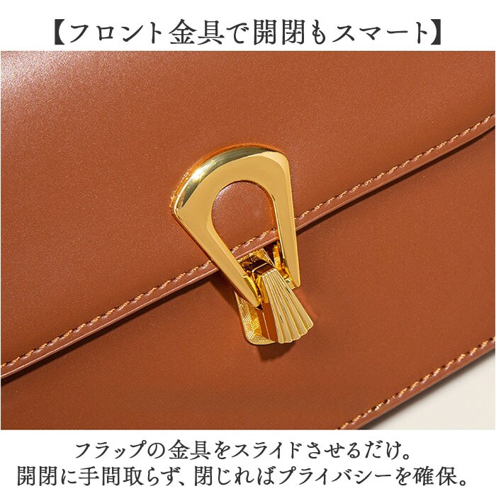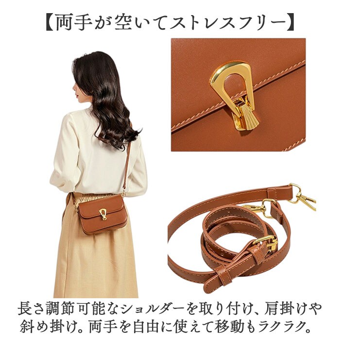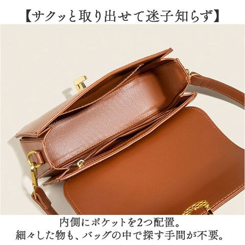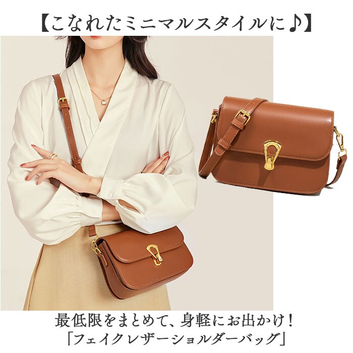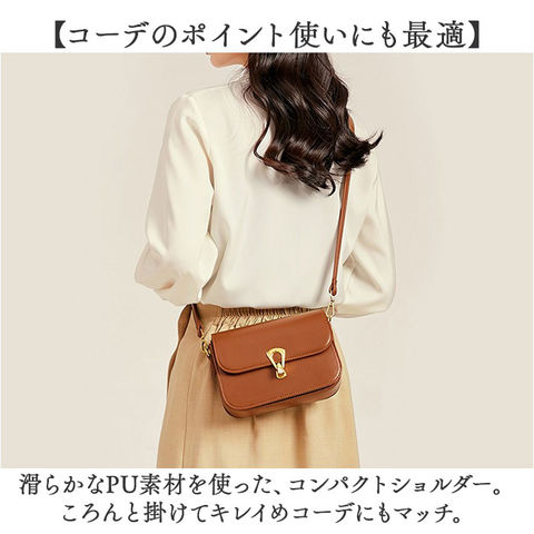 | 商品説明 | 【こなれたミニマルスタイルに♪】最低限をまとめて、身軽にお出かけで!「フェイクレザーショルダーバッグ」。【コーデのポイント使いにも最適】滑らかなPU素材を使った、コンパクトショルダー。ころんと掛けてキレイめコーデにもマッチ。【両手が空いてストレスフリー】長さ調節可能なショルダーを取り付け、肩掛けや斜め掛け。両手を自由に使えて移動もラクラク。【フロント金具で開閉もスマート】フラップの金具をスライドさせるだけ。開閉に手間取らず、閉じればプライバシーを確保。【安定感のある可愛らしいフォルム】丸みを持たせた形で、2つ折り財布やスマホなどの貴重品を。しっかり自立、型崩れもしにくい◎【サクッと取り出せて迷子知らず】内側にポケットを2つ配置。細々した物も、バッグの中で探す手間が不要。【コーデに馴染みやすい仕上がり】落ち着きのあるカラーに、金具使いで高級感アップ。お気に入りのカラーをチョイス。【ポケット仕様】内側:ファスナーポケット×1、オープンポケット×1 |
