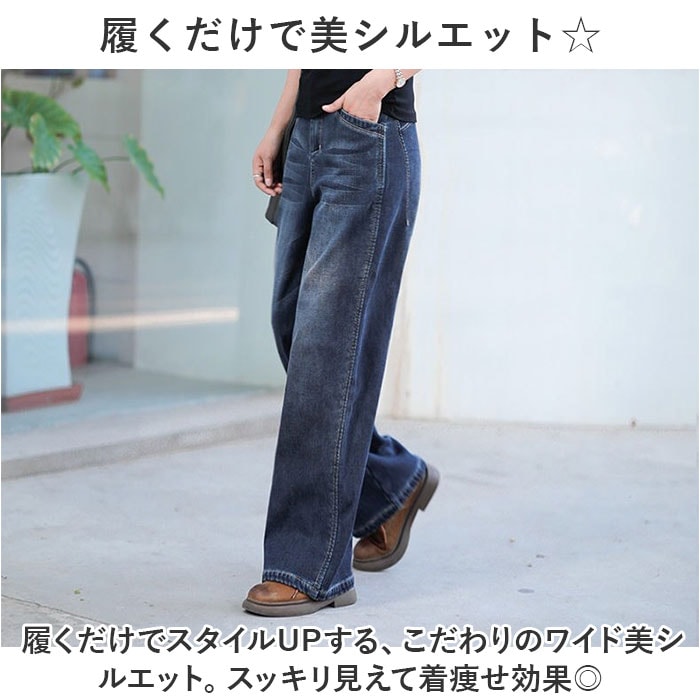 | 商品説明 | ワイド美シルエット☆ゆるっとスタイルがおしゃれな、デニムパンツが登場。【履くだけで美シルエット☆】履くだけでスタイルUPする、こだわりのワイド美シルエット。スッキリ見えて着痩せ効果◎【ハイウエストでコーデが締まる】ハイウエストなので、コーデがキュッと締まった印象に仕上がる♪バランス感が良いデザイン。【カジュアルなのに大人っぽい】上品さを感じるデニム生地と、ポケットなしのキレイなバックスタイルが大人っぽさを演出。【ストレッチ素材でのびのびラクチン】ストレッチ素材を使用しているので、履き心地はラクチン◎動きに合わせてグンと伸びて快適!【合わせやすいベーシックアイテム】お持ちのお洋服に合わせやすい、ベーシックアイテム。着回し力がバツグンで毎日履きたくなる。 |