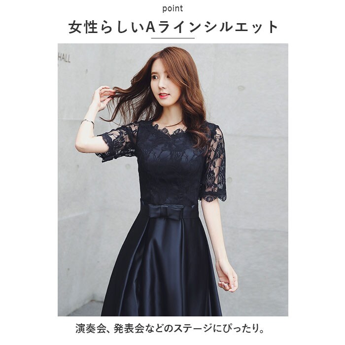 | 商品説明 | 華やかな印象を演出してくれる、ステージドレスが新登場。【足元までしっかり覆うロング丈】演奏会、発表会などのステージにぴったり。【女性らしいAラインシルエット】ウエストから足元にかけて広がるデザイン。【メリハリのある仕上がり】切り替えデザインでウエストすっきり。上身頃にはレース素材を重ね、スカート部分はハリのあるしっかりとした生地感。【アクセントをプラス】フロントのリボンデザインがポイント。【バストのカタチをキープ】立体感のあるパッド入りで安心。【袖ありタイプ】腕まわりは透け感があり、素肌をキレイ魅せ♪【お好みに合わせてチョイス】背中ファスナータイプと、編み上げタイプの2種類。 |