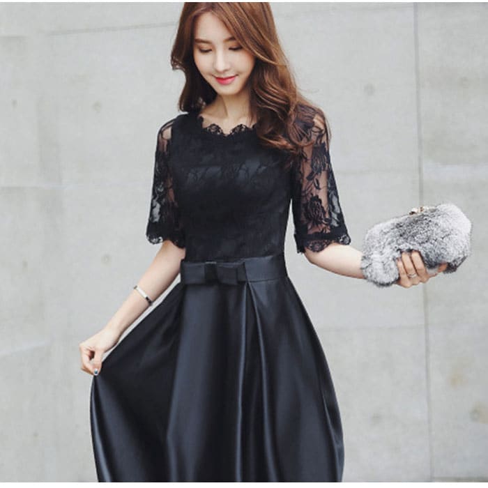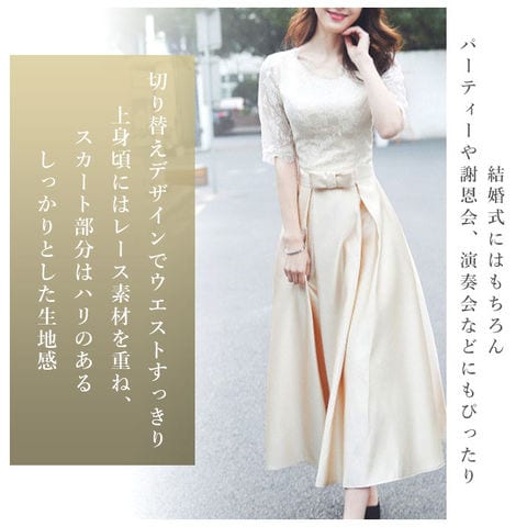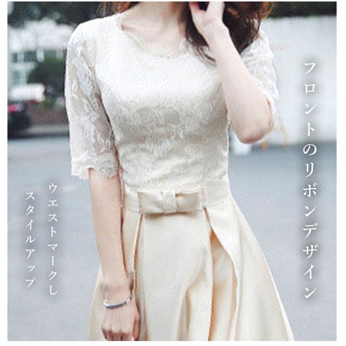| 商品説明 | 華やかな印象を演出してくれる、ステージドレスが新登場。【ミモレ丈ドレス】ふくらはぎが隠れるくらいの長さで、足元すっきりキレイ魅せ♪【女性らしいAラインシルエット】ウエストから足元にかけて広がるデザイン。【メリハリのある仕上がり】切り替えデザインでウエストすっきり。上身頃にはレース素材を重ね、スカート部分はハリのあるしっかりとした生地感。【アクセントをプラス】フロントのリボンデザインがポイント。【バストのカタチをキープ】立体感のあるパッド入りで安心。【袖ありタイプ】腕まわりは透け感があり、素肌をキレイ魅せ♪【お好みに合わせてチョイス】背中ファスナータイプと、編み上げタイプの2種類。 |
