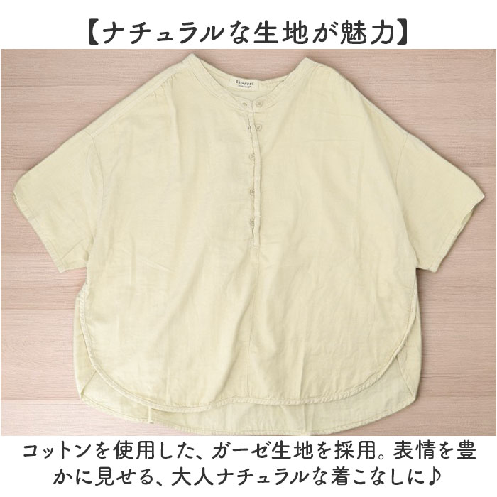 | 商品説明 | 【ふんわり優しい♪ダブルガーゼ】ゆったり涼しい着心地が自慢の1枚。「ブラウス Tシャツ」が登場。【ナチュラルな生地が魅力】コットンを使用した、ガーゼ生地を採用。表情を豊かに見せる、大人ナチュラルな着こなしに♪【暑い季節も快適に過ごせる】通気性の良さと、吸水性が自慢のダブルガーゼ生地。汗をかいてもベタつきにくく、快適。【ゆったりシルエットでストレスなし】締め付け感の少ない、ゆったり設計。ふんわりとラクチンな着心地で、1日着ても疲れにくい!【体型カバー効果もバツグン!】身体のラインを拾いにくいフォルムと、ドロップショルダーで華奢見せ効果もUP♪【シンプルだから合わせやすい】パンツもスカートもマッチする、着回し力!季節の変わり目から夏まで、ヘビロテ確定の1枚。 |