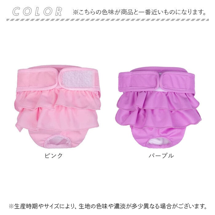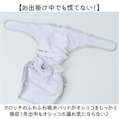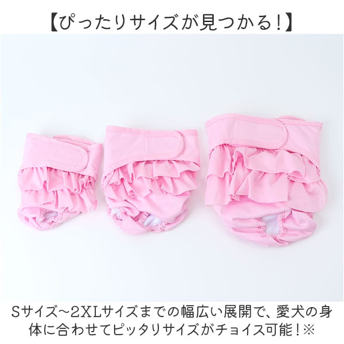 | 商品説明 | 【愛犬とのお出掛けや介護に大活躍】おしゃまなワンちゃんのお出掛けを応援♪お洋服感覚で着られる「ドッグ用マナーパンツ(女の子用)」【オムツに見えないお洒落なデザイン】可憐なダブルフリルがちょこちょこ歩くたびに華やかに翻る♪パッと見オムツに見えないデザイン。【お出掛け中でも慌てない!】クロッチのふわふわ吸水パッドがオシッコをしっかり吸収!外出中もオシッコの漏れ気にならない♪【5層吸水構造が安心のヒミツ】滑らかな表地内側に、瞬間吸水層2枚+防水ラミネート層+通気性抜群のメッシュを重ねた安心構造。【サラサラメッシュでいつでも快適】お腹に直接当たる内側の生地は肌触りの優しいメッシュ仕上げ。ムレが気になる季節もサラッと快適。【面ファスナーでピタッと装着】ワンちゃんのお尻を包みこむように巻き付け、面ファスナーで背中を2ヵ所止めるだけの簡単装着!【着用時のストレスフリー】尻尾が出せるようにお尻部分が丸く開いたデザインなので、窮屈感がなく着用時のストレスフリー♪【活発なワンちゃんでも大丈夫】ぐ~んと伸びるゴムギャザーがお腹周りにフィット!活発なワンちゃんでも脱げにくくて安心。【ご家庭で手軽にお洗濯♪】ご家庭で手軽にお手入れのできる綿ポリエステル混紡素材。繰り返し使えるからとってもエコ。【ぴったりサイズが見つかる!】Sサイズ~2XLサイズまでの幅広い展開で、愛犬の身体に合わせてピッタリサイズがチョイス可能!※超小型犬~ウエスト48cm~70cm程度までの中型~大型のワンちゃんに最適なサイズ感です。【お出掛けの日はプリンセスに変身♪】女の子らしさが引き立つダブルギャザースカートに、プリンセスカラーが華やかに映えるラインナップ。※生産時期やサイズにより、生地の色味や濃淡が多少異なる場合がございます。 |