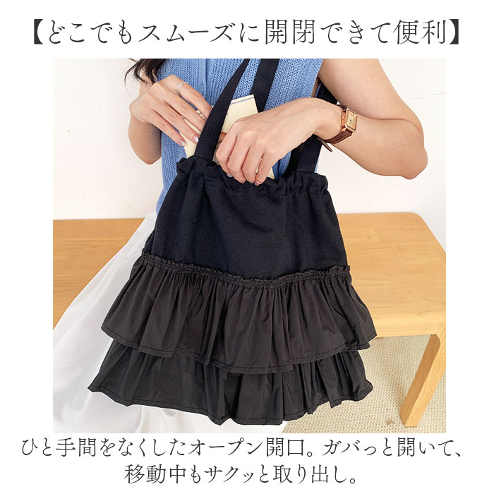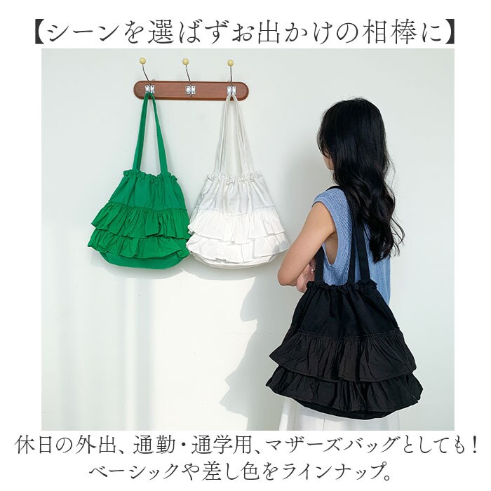 | 商品説明 | 【おしゃれに持てて使い方いろいろ】メインもサブ使いも自在◎大人可愛く仕上げた「キャンバストートバッグ」。【コーデにアクセントをプラス】ラフに持てるシンプル設計ながら、異素材を使った可愛らしいフリルデザインが映える♪【持っていればヘビロテ間違いなし】ナチュラルな風合いのコットン素材。丈夫でガシガシ使えて、シーズンレスで活躍。【キュッと絞ってシルエットチェンジ】フロント内側にドローコード付き。荷物量やお好みに合わせて、フォルムを変えることが可能!【肩掛けできて移動がラクラク】ハンドルはアウターの上からも、肩に掛けられる長さに。荷物が重くなっても大丈夫。【どこでもスムーズに開閉できて便利】ひと手間をなくしたオープン開口。ガバっと開いて、移動中もサクッと取り出し。【A4対応でざっくりひとまとめ】A4が横向きにすっぽり。スリムに見えつつ、お出かけに必要なアイテムが1つに。(※)ドローコードを絞らない状態で、A4対応です。【サクッと取り出せて迷子知らず】合計3つのポケットを配置。バッグの中で、小物を探す手間が不要。【シーンを選ばずお出かけの相棒に】休日の外出、通勤・通学用、マザーズバッグとしても!ベーシックや差し色をラインナップ。【ポケット仕様】内側:ファスナーポケット×1、オープンポケット×2 |