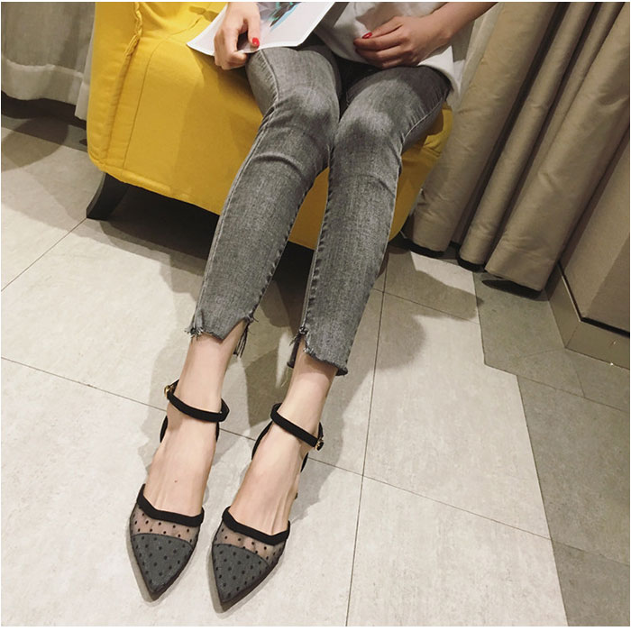 シースルーパンプス オフィス ローヒール【グレー】【37(23.5cm)】