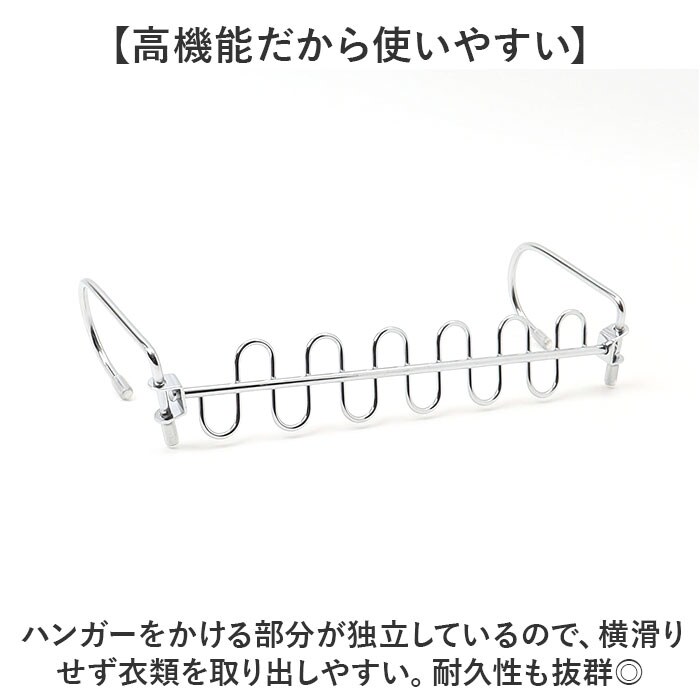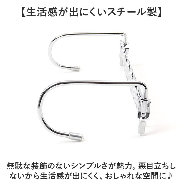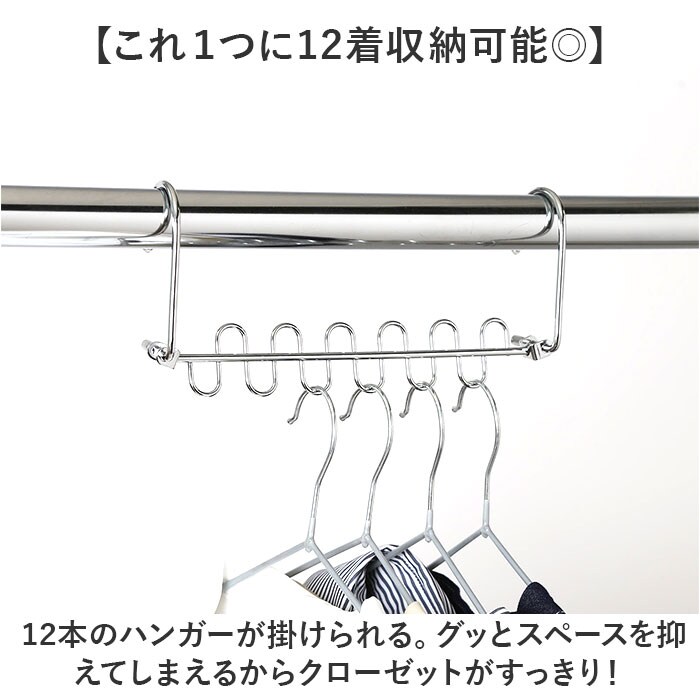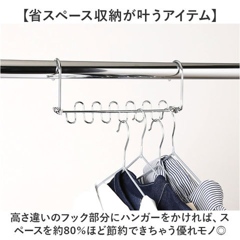 | 商品説明 | 【空間を有効活用できる!】省スペースにハンガーをたっぷり収納◎「ハンガーフック ステンレス」が登場。【省スペース収納が叶うアイテム】高さ違いのフック部分にハンガーをかければ、スペースを約80%ほど節約できちゃう優れモノ◎【これ1つに12着収納可能◎】12本のハンガーが掛けられる。グッとスペースを抑えてしまえるからクローゼットがすっきり!【縦横両方使える!】縦収納も横収納もできる、クルっと回るエッジ。スペースや掛ける場所に合わせてチェンジ!【高機能だから使いやすい】ハンガーをかける部分が独立しているので、横滑りせず衣類を取り出しやすい。耐久性も抜群◎【生活感が出にくいスチール製】無駄な装飾のないシンプルさが魅力。悪目立ちしないから生活感が出にくく、おしゃれな空間に♪【お洗濯でも大活躍!】ハンガー同士の距離が一定に保てるので、室内干しなどのお洗濯でも大活躍する! |
