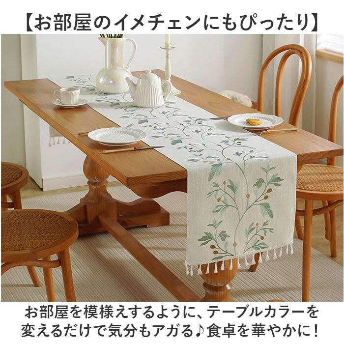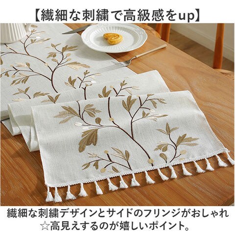 | 商品説明 | 【ナチュラルな刺繍デザイン♪】いつものテーブルをパッと華やかに!「テーブルランナー テーブルセンター」が登場。【幅広くマッチするナチュラルさ♪】いろんなお部屋やテーブルにマッチする、ナチュラルなデザインと色合いが魅力。【繊細な刺繍で高級感をup】繊細な刺繍デザインとサイドのフリンジがおしゃれ☆高見えするのが嬉しいポイント。【お部屋のイメチェンにもぴったり】お部屋を模様えするように、テーブルカラーを変えるだけで気分もアガる♪食卓を華やかに!【簡単に空間をイメージチェンジ】いつものテーブルにかけるだけで、模様替えをしたようにイメチェンができる!【特別なシーンやインテリアにも♪】パーティーなどの来客用、玄関やベッドルーム、カフェやサロンなどのインテリアとしても◎ |