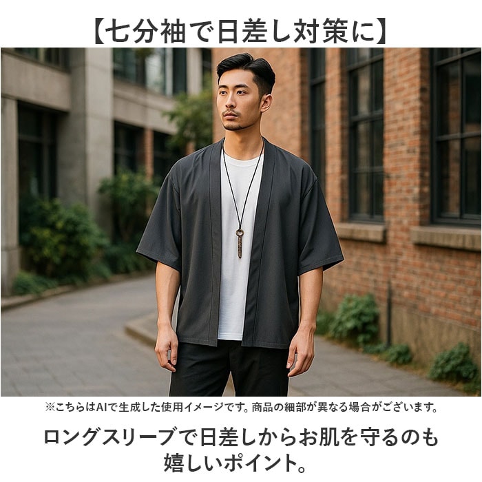 | 商品説明 | 【和モダンな雰囲気の仕上がり】羽織るだけでサマになる♪和テイストを取り入れたメンズ向けカーディガン。【ゆったりとした着心地】リラックス感のあるシルエットで、ストレスのない快適な着用感を実現。【軽やかな着心地】薄手の生地を使用し、通気性が良くサラッと快適に。暑い季節の羽織りに最適☆【七分袖で日差し対策に】ロングスリーブで日差しからお肌を守るのも嬉しいポイント。【肌寒い時にも活躍】ちょっと肌寒い時にシャツと合わせて使うのもGOOD♪ロングシーズンで使える! |