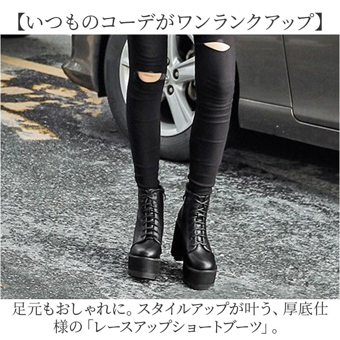 | 商品名 | 厚底 レースアップショートブーツ pkld338 |