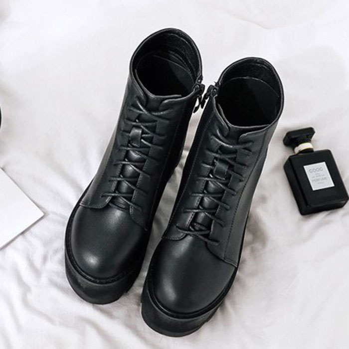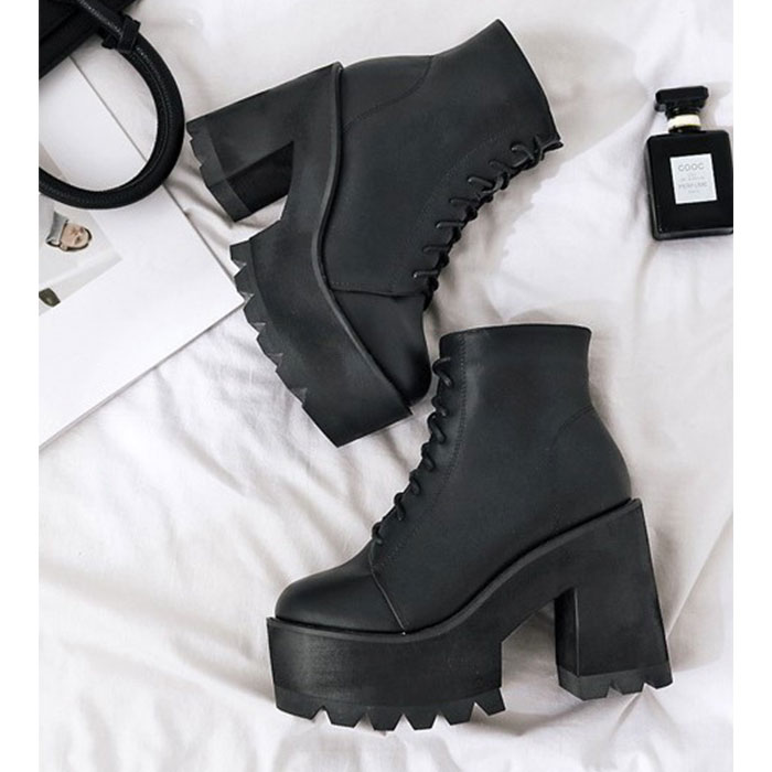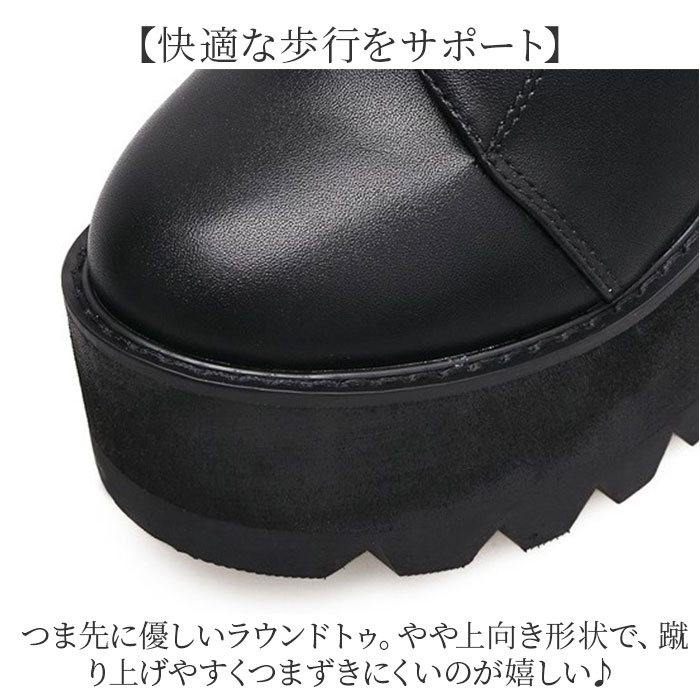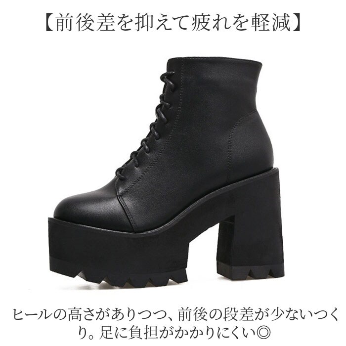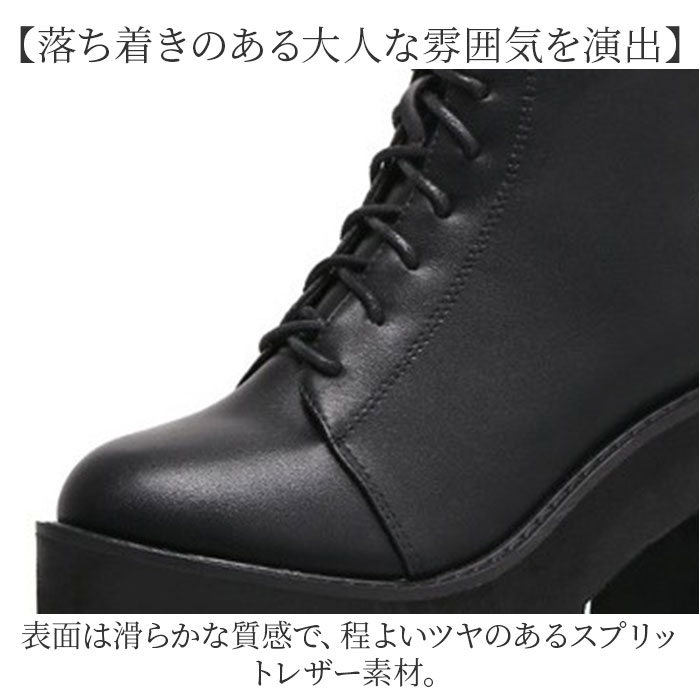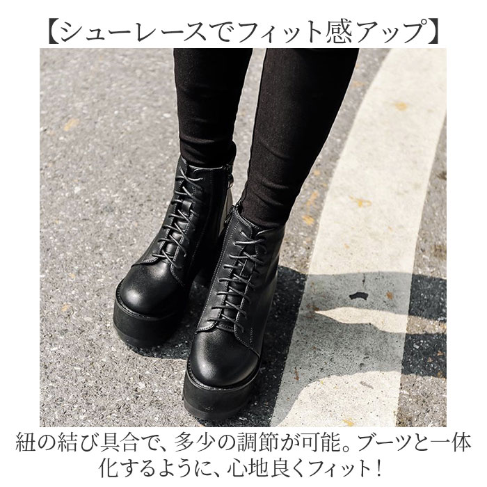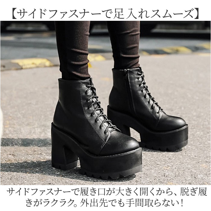 厚底 レースアップショートブーツ pkld338【ブラック】【35(22.5cm)】