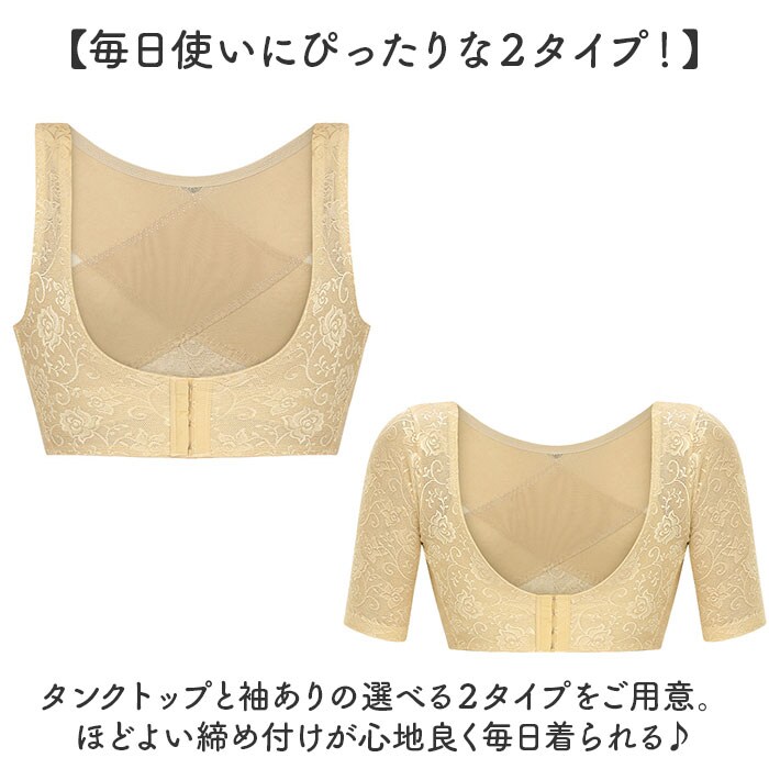 | 商品説明 | 【毎日着用できる心地良さ♪】袖あり、なしの選べる2タイプ☆「二の腕シェイパー バストアップ 加圧シャツ レディース」が登場。【毎日使いにぴったりな2タイプ!】タンクトップと袖ありの選べる2タイプをご用意。ほどよい締め付けが心地良く毎日着られる♪【姿勢補正して美しい背中に☆】バッククロスで正しい姿勢に導く、姿勢補正デザインを採用。着るだけで背すじがピンとする!【美バストを叶える、脇肉サポート】バストラインを下から支えてサポート。流れる脇肉を寄せ、バストアップ効果も期待できる◎【着用しやすいフロントホック】その日の身体に合わせてフィット感を調節できる、フロントホックを採用。自分で着脱しやすい【二の腕も引き締めてくれる!】袖ありのBタイプは、適度な圧で二の腕をシェイプアップ!たるんでしまった二の腕に♪【毎日のインナーとしても大活躍】柔らかな素材を使用しているので、毎日着ても苦しくない◎高級感のあるレーシーデザインもGOOD |